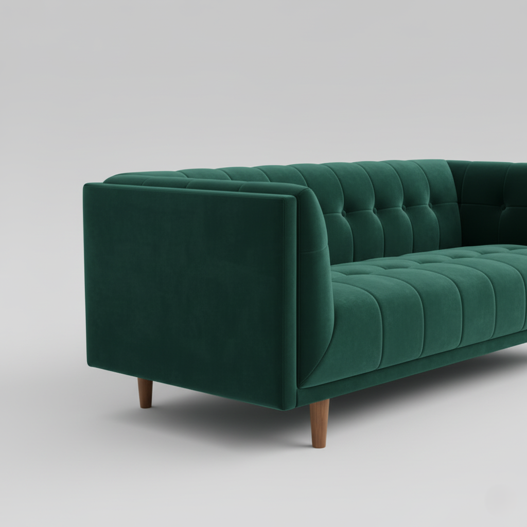 ঘরের আসবাবপত্রের জন্য আধুনিক সোফা প্লাইউড এবং ভেলভেট ফ্যাব্রিক দিয়ে তৈরি টাফ্টেড ডিজাইন এবং বসার ঘরের জন্য আর্ম রেস্ট এবং আরামদায়ক সোফা