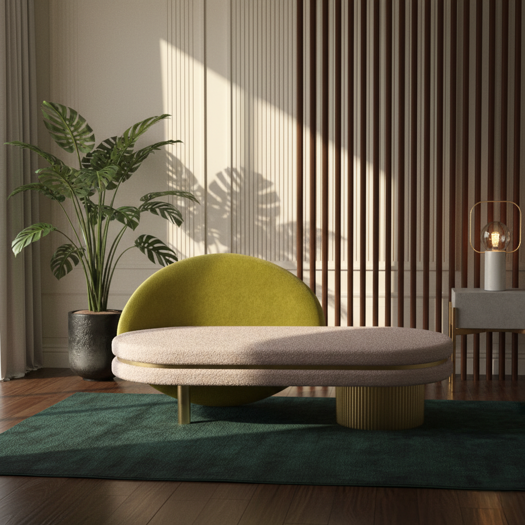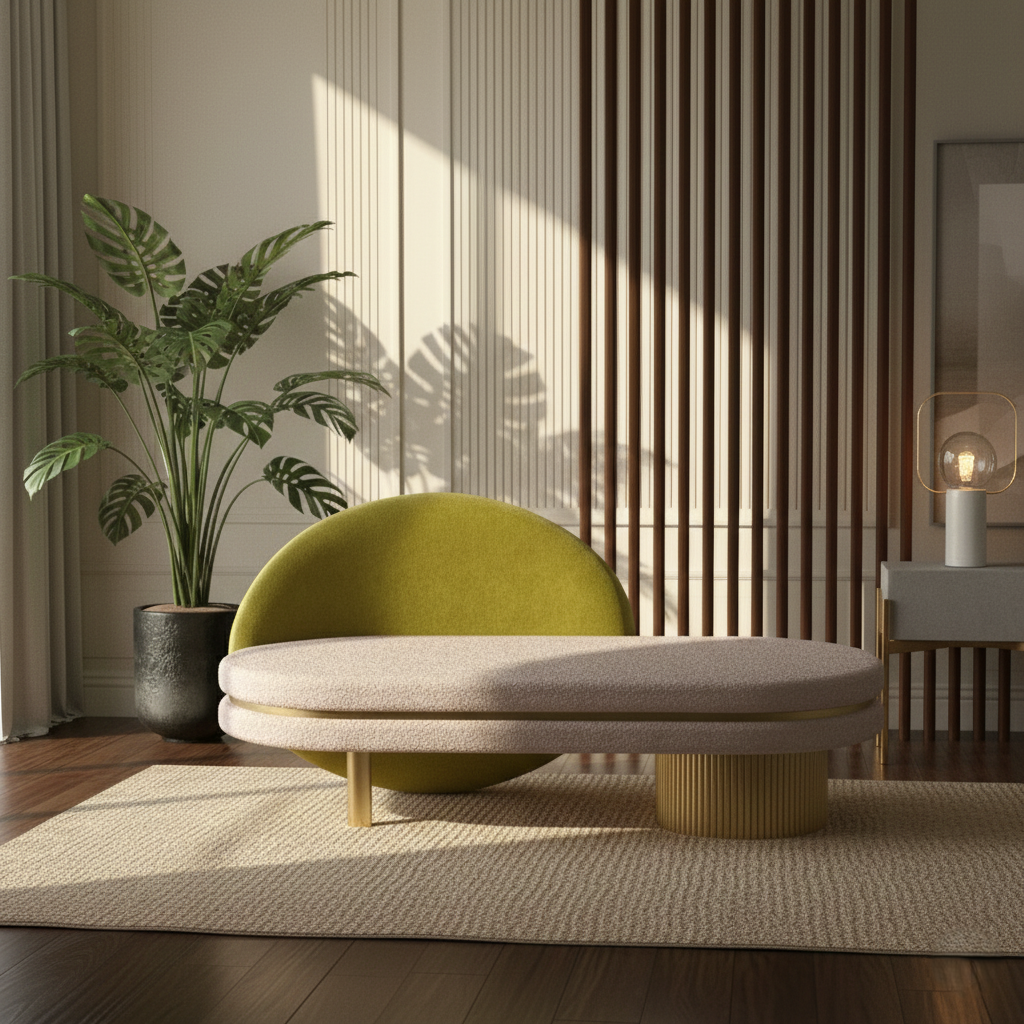 উপাদান : মারান্ডি কাঠ দিয়ে তৈরি অভ্যন্তরীণ ফ্রেম এবং বাউকল আপহোলস্ট্রি, উচ্চ-ঘনত্বের ফোম এবং পাউডার আবরণ দিয়ে সমাপ্ত ধাতব পা দিয়ে স্তরযুক্ত।