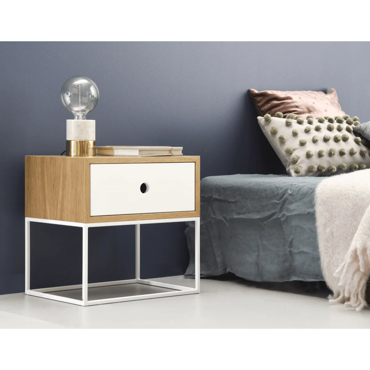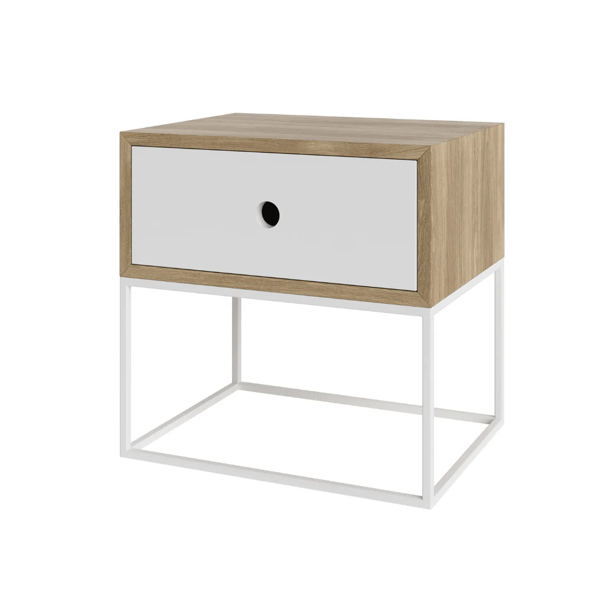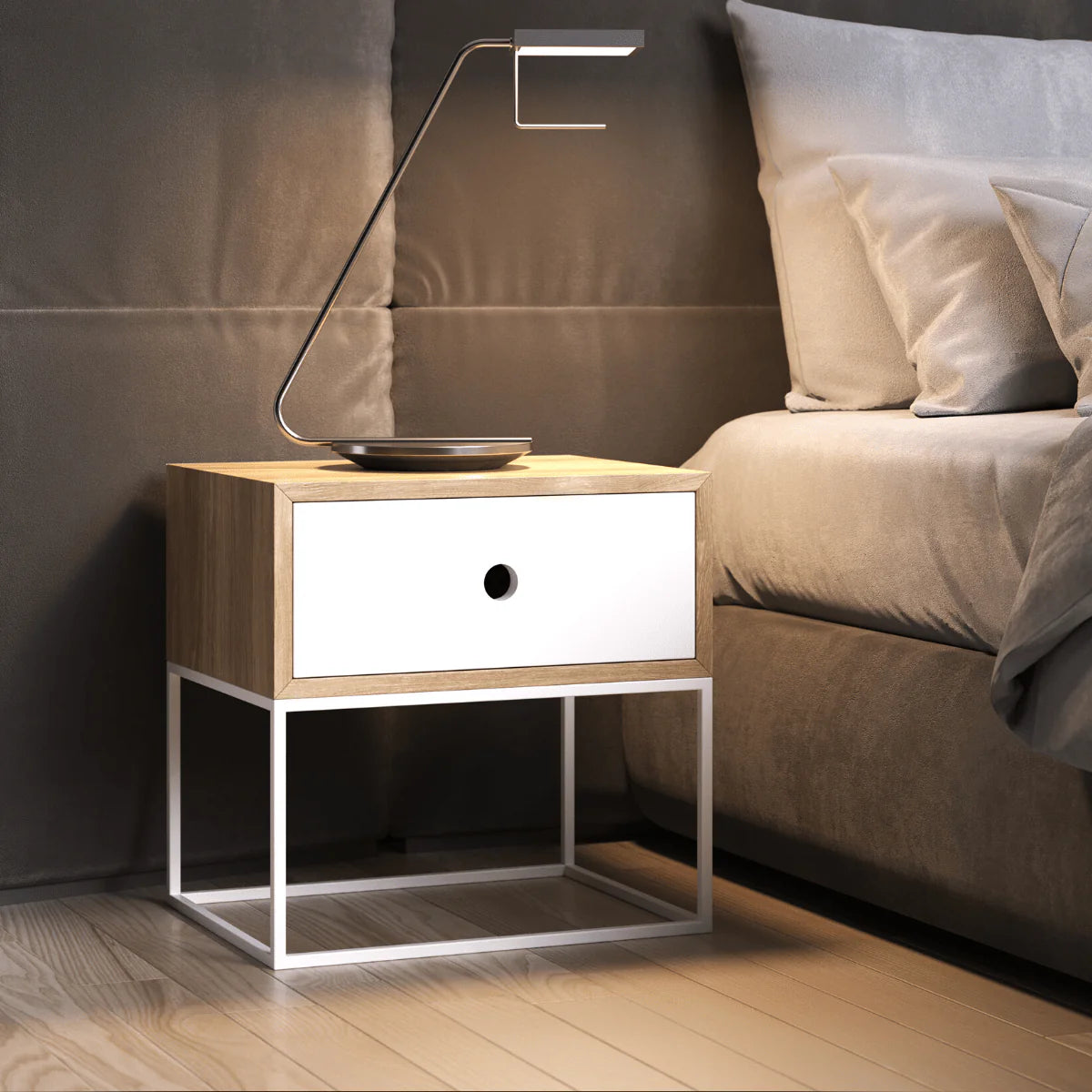 ধাতব পা সহ কাঠের ড্রয়ার সাইড এন্ড টেবিল
