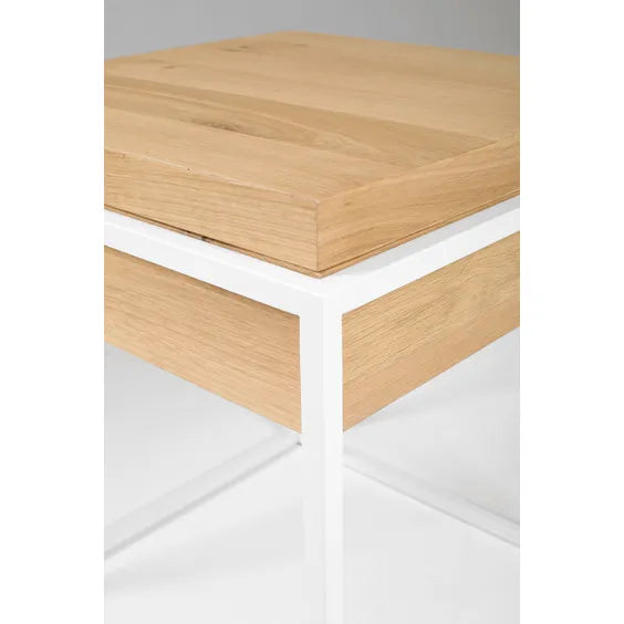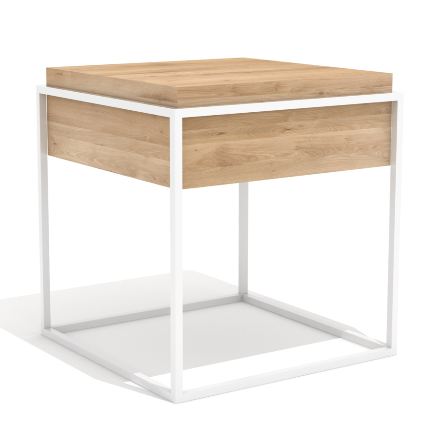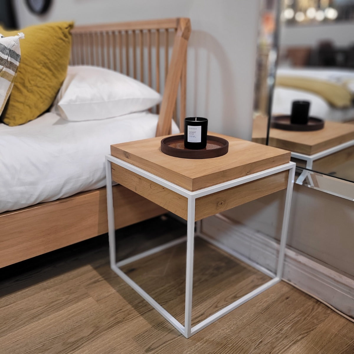 ধাতব ফ্রেম বেস সহ কাঠের সাইড টেবিল