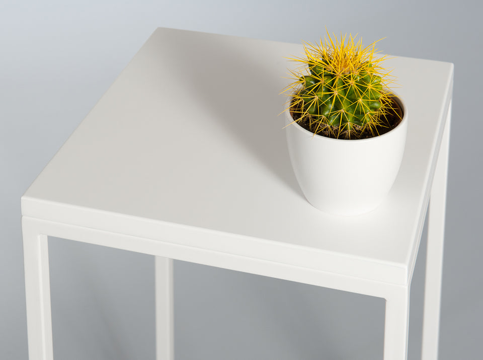 ধাতব পায়ের বেস সহ কাঠের সাইড টেবিল