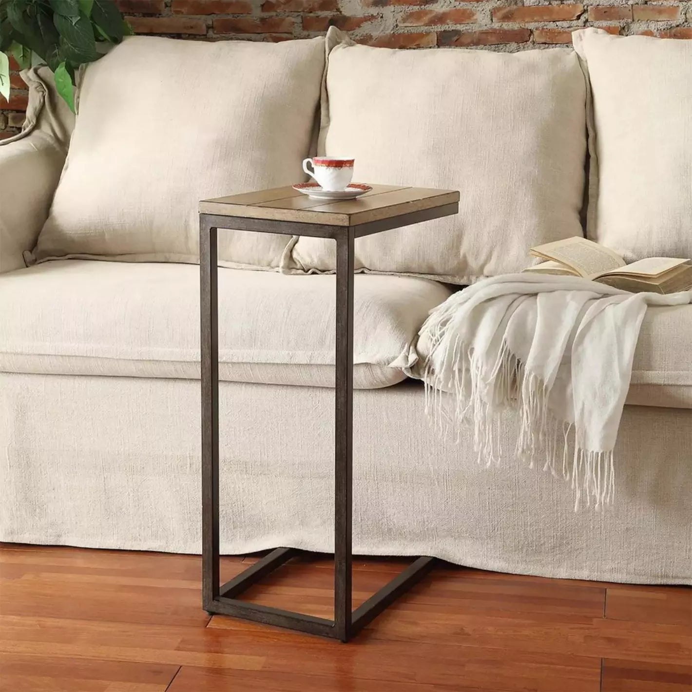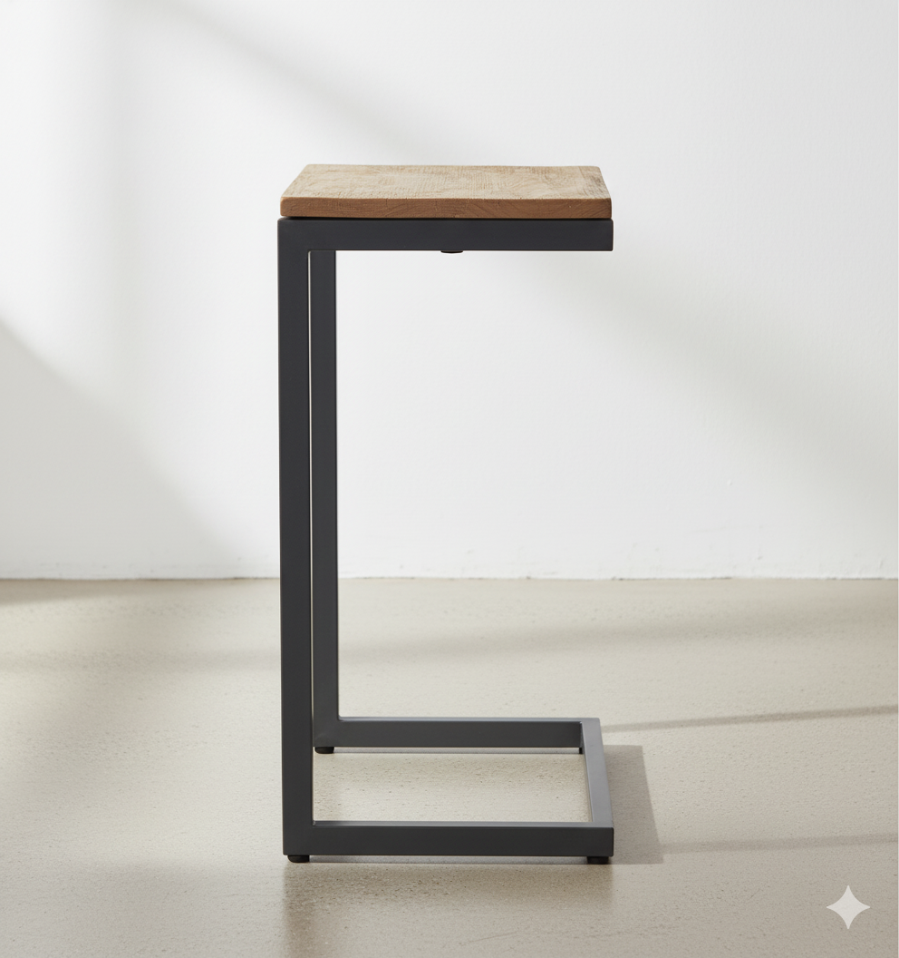 ধাতব ফ্রেম বেস সহ কাঠের সাইড টেবিল