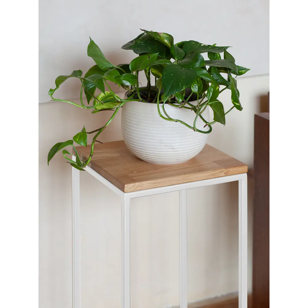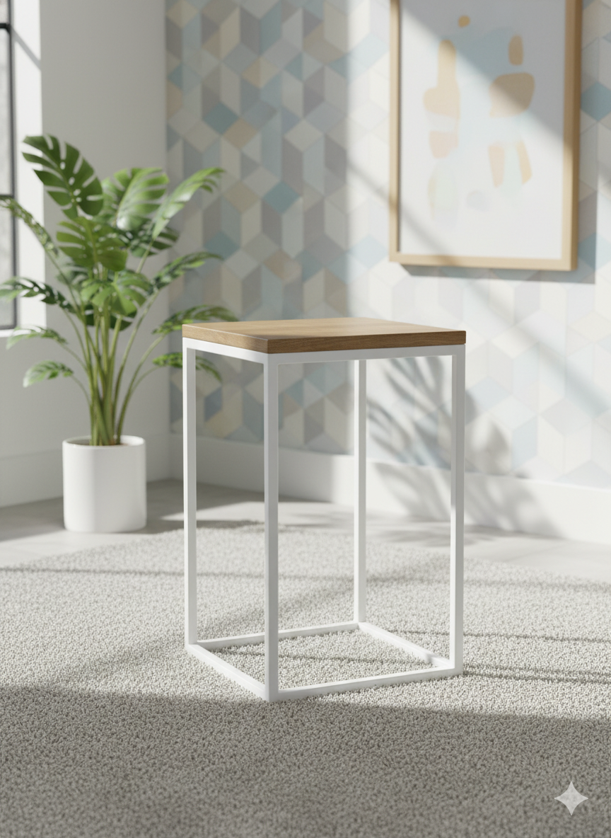 ধাতব পায়ের বেস সহ কাঠের সাইড টেবিল