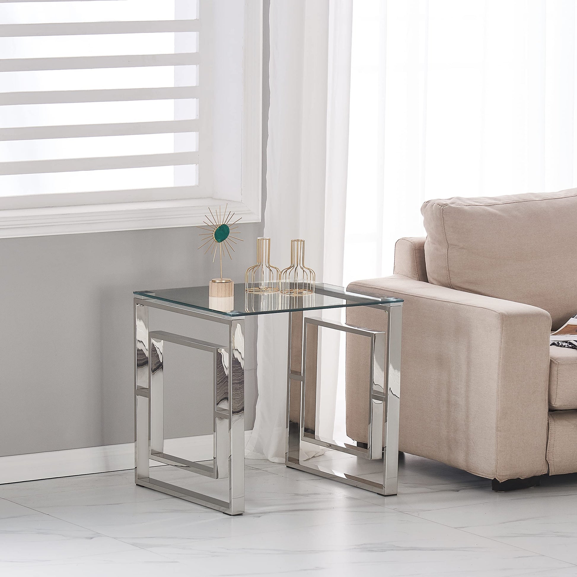 ধাতব ফ্রেম সহ কাচের সাইড টেবিল