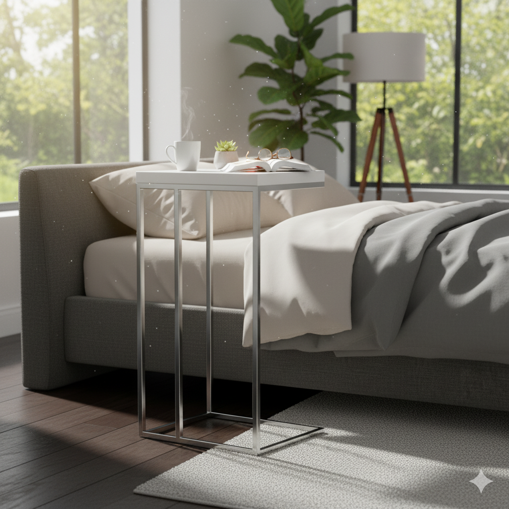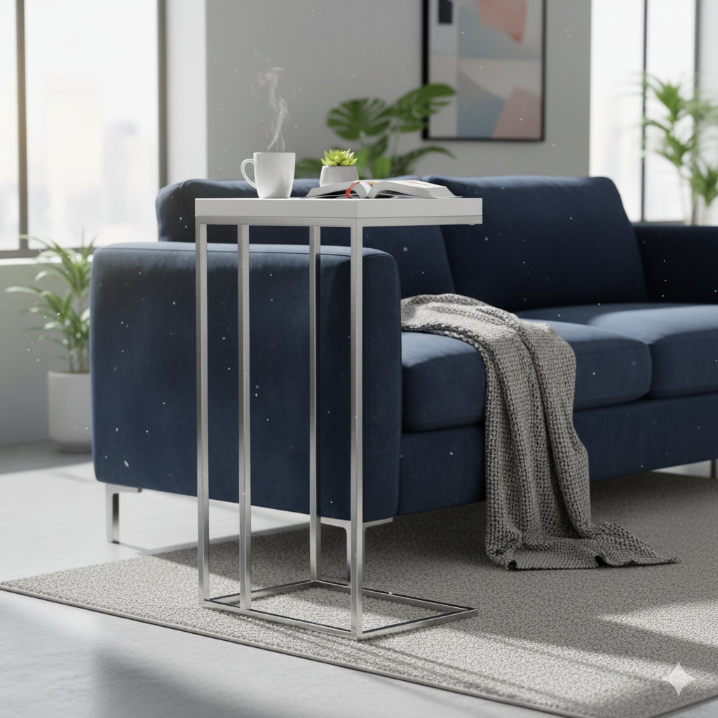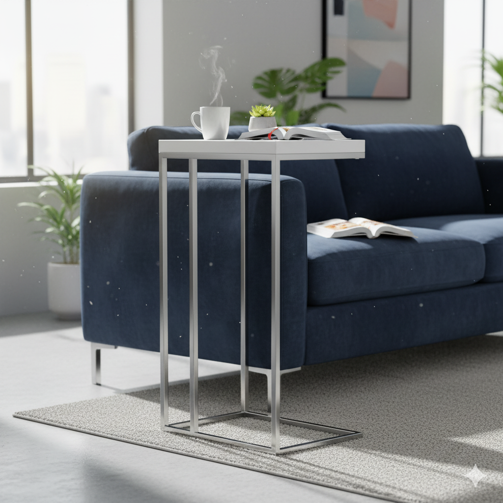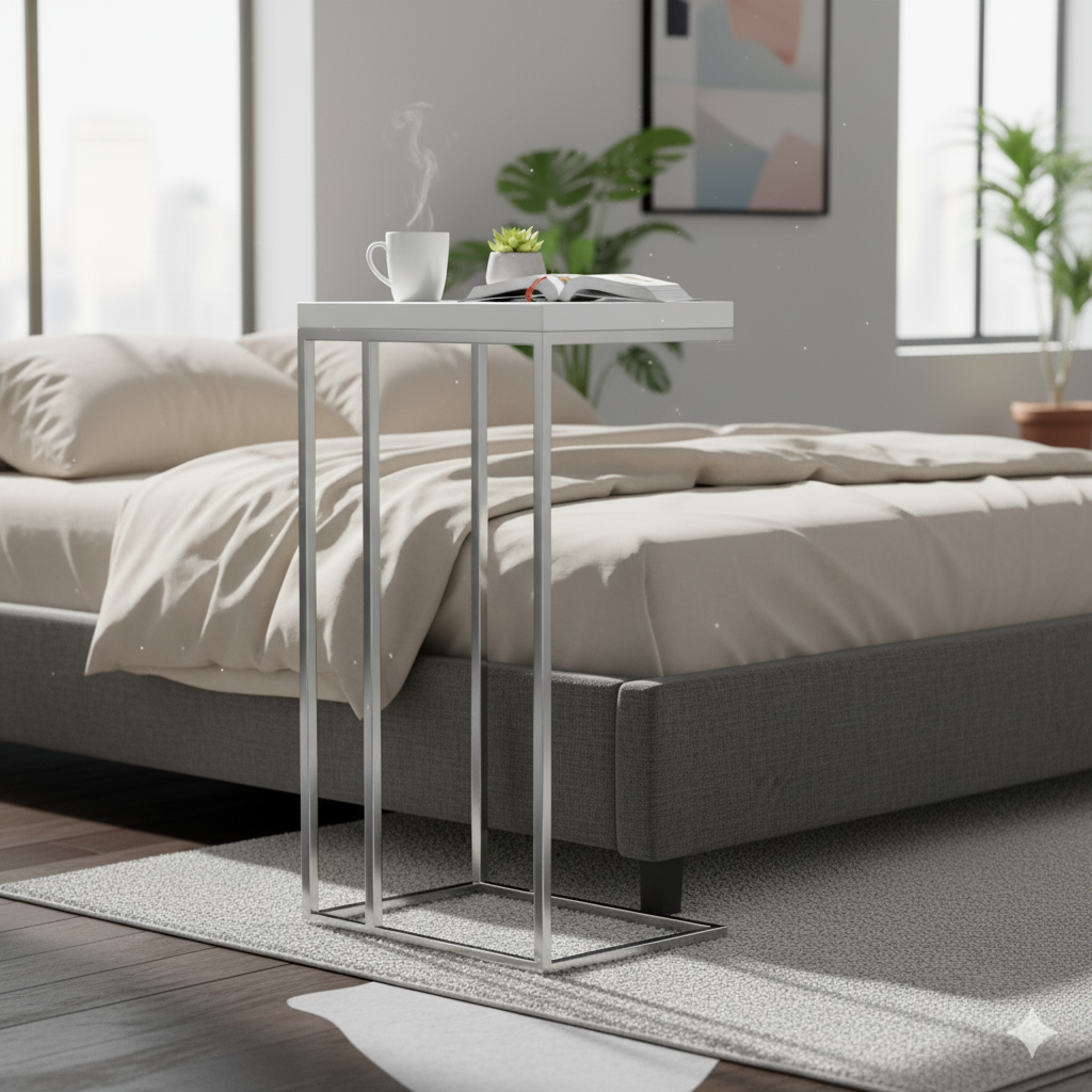 লেমিনেটেড বোর্ডে ধাতব পায়ের বেস সহ সাইড টেবিল