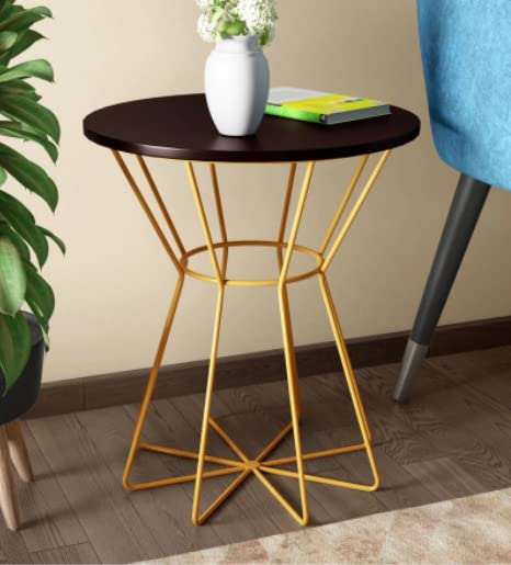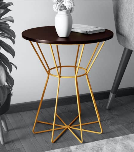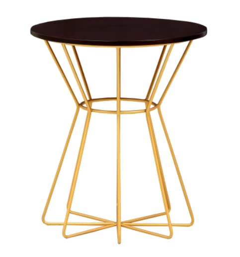 কাঠের শীর্ষ এবং ধাতব ফ্রেম সহ গোলাকার সাইড টেবিল