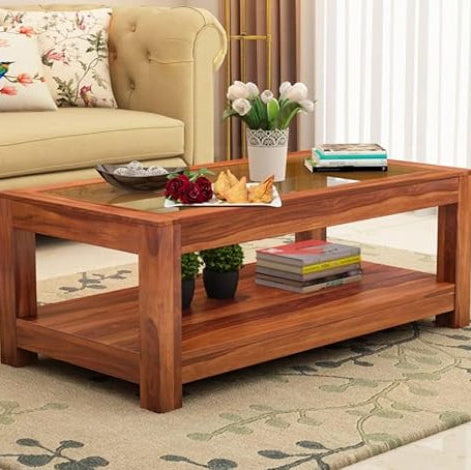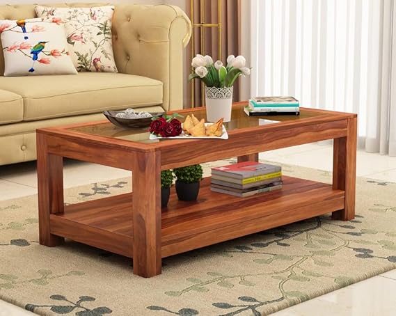 উপাদান: Internal and Table top made from Solid Wood with Polish and Top glass