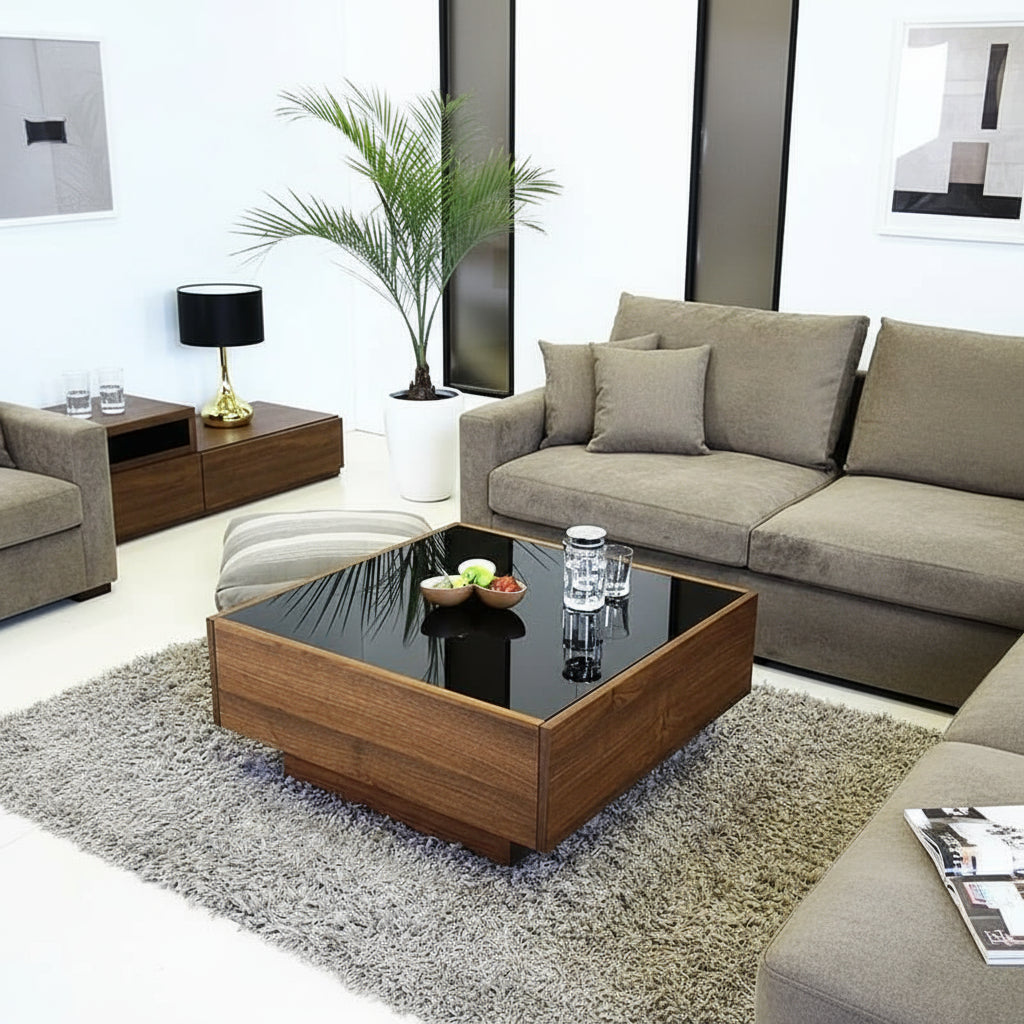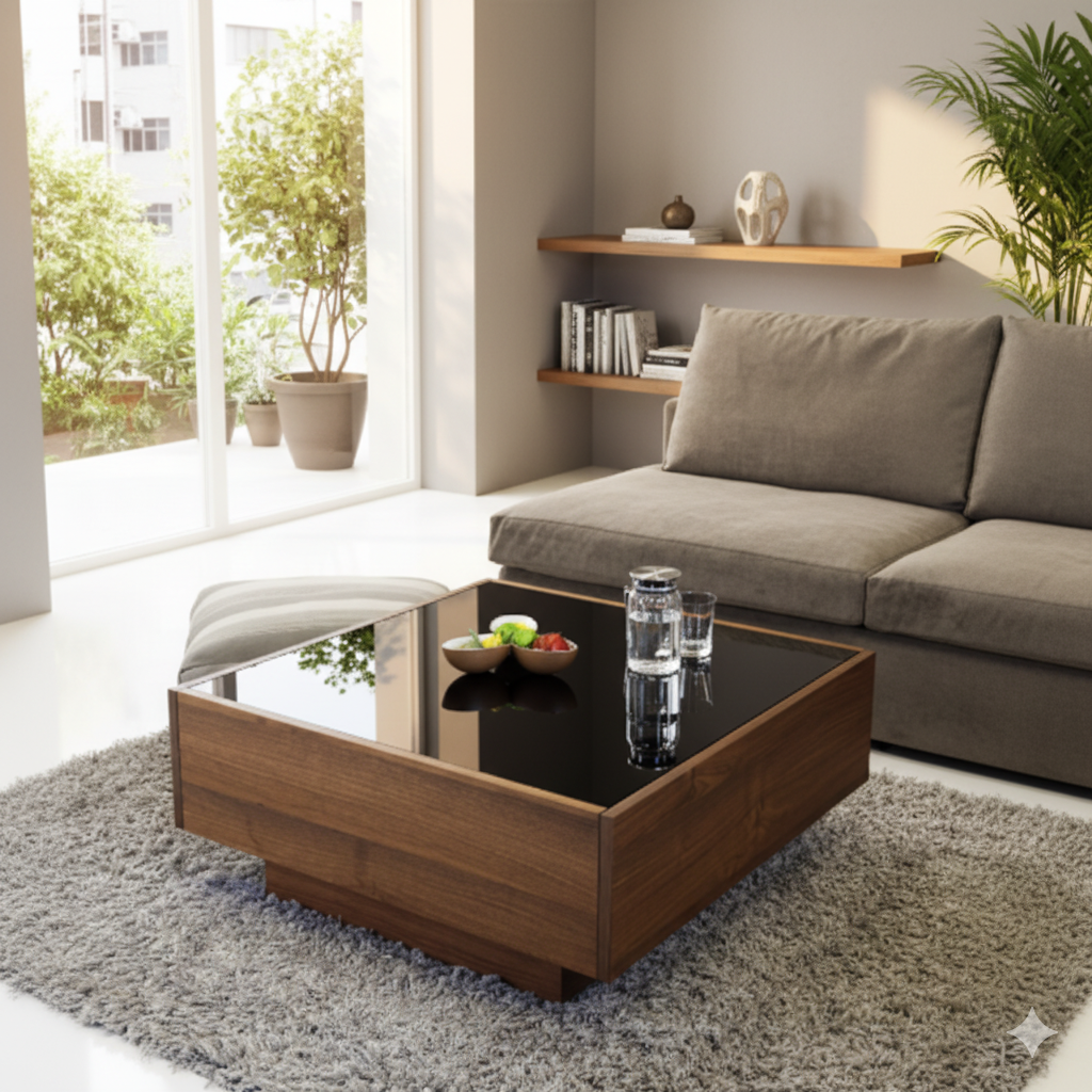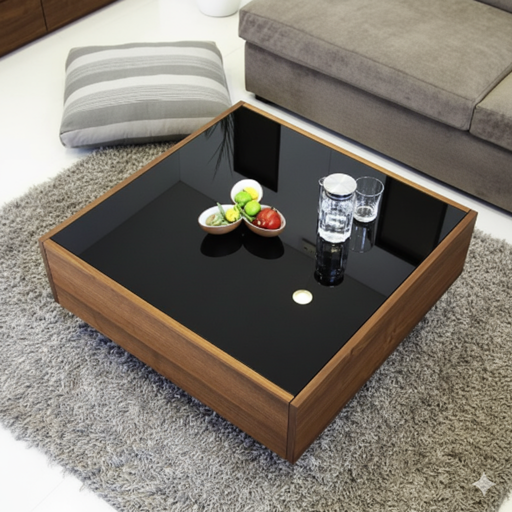 উপাদান: Internal and Table top made from Pre-laminate Particle Board and Top glass