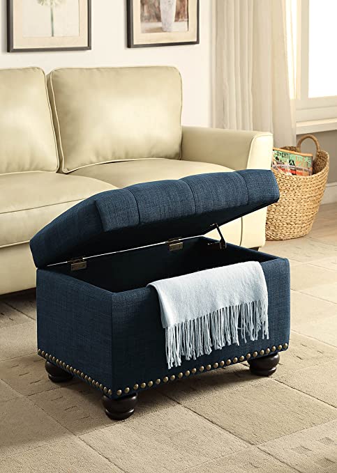 কাঠের ফ্রেম লেদারেট অটোমান স্টোরেজ সহ