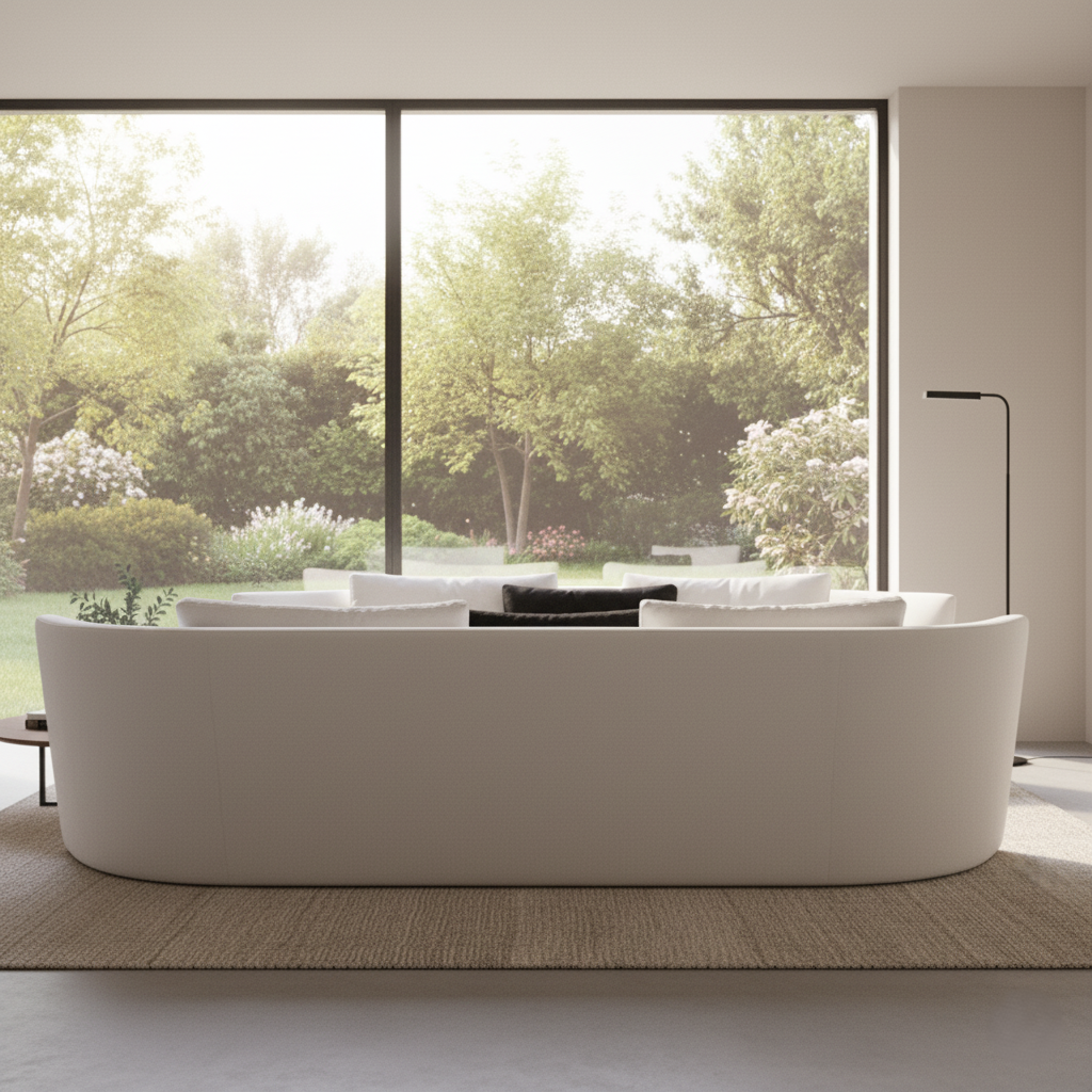 আধুনিক ঘরের জন্য ডিজাইনার সোফা নরম কাপড়, গভীর আসন এবং স্টাইলিশ অভ্যন্তরের জন্য একটি মসৃণ চেহারা