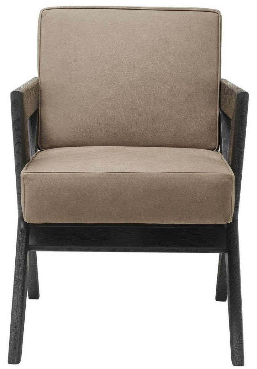 Padded Box Cushions: The seat and backrest consist of plush, rectangular box cushions upholstered in a smooth, matte taupe or light brown material (likely high-quality leatherette).