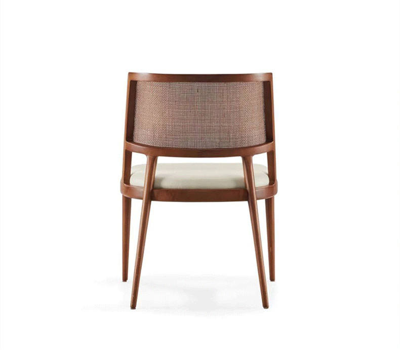 বৈশিষ্ট্য: Woven Cane Backrest: The back features a classic rattan or cane mesh panel, which provides breathable support and adds a vintage, organic texture to the design.