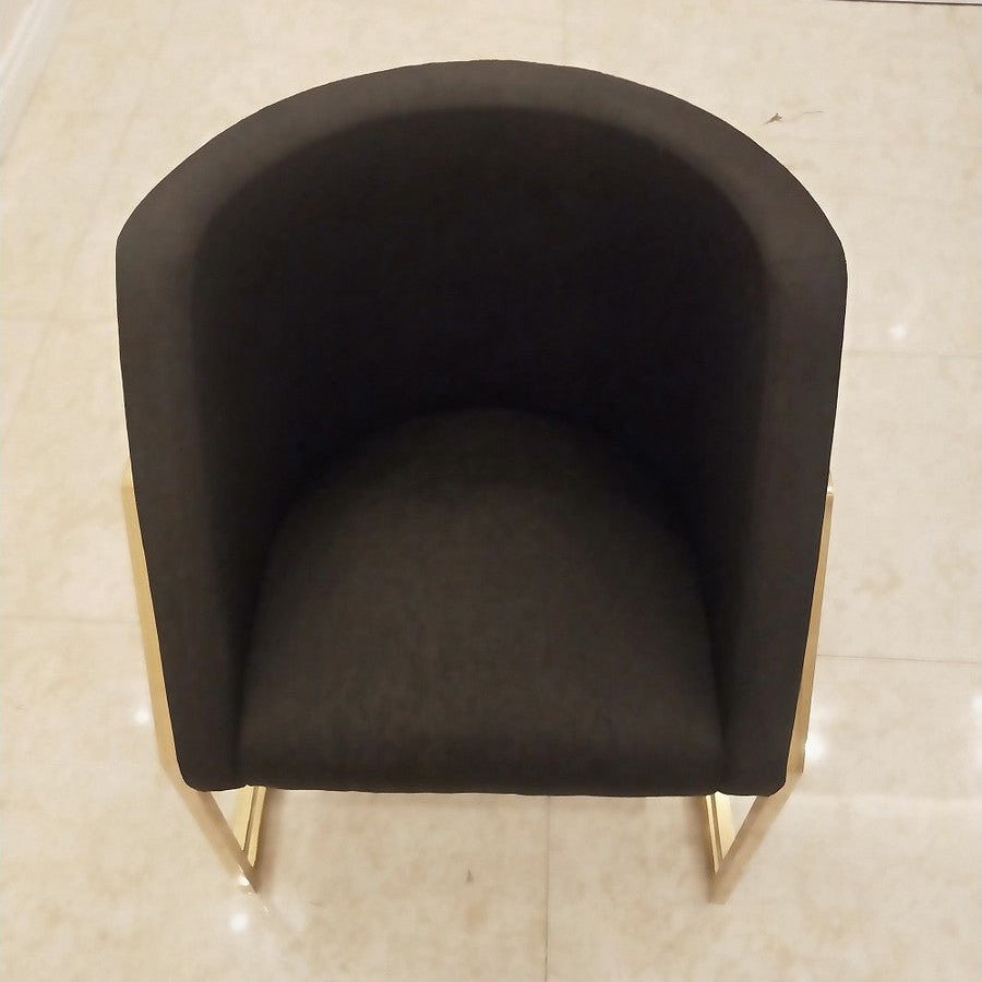 Deep Black Velvet Upholstery: The entire body of the chair (backrest and seat cushion) is upholstered in a rich, matte black velvet fabric, adding a sense of luxury and depth.