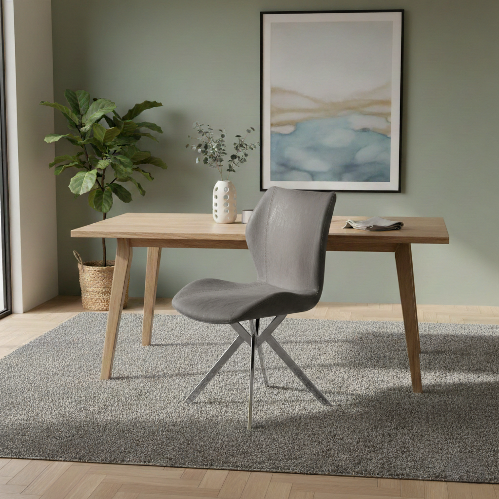 বাড়ির জন্য আধুনিক ডাইনিং চেয়ার - ডাইনিং রুমের জন্য উপযুক্ত স্টেইনলেস স্টিলের পা সহ প্রিমিয়াম লেদারেট আপহোলস্ট্রী