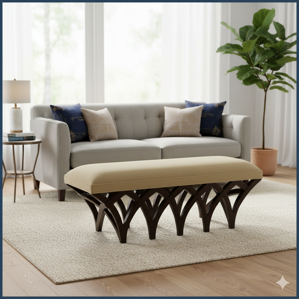 ফ্যাব্রিক গৃহসজ্জার সামগ্রী এবং কাঠের বেসে অটোমান