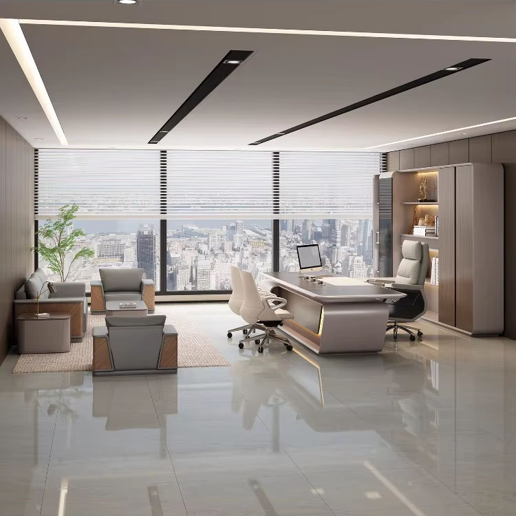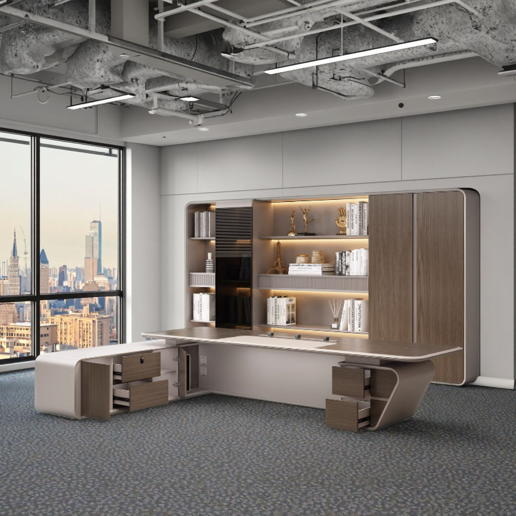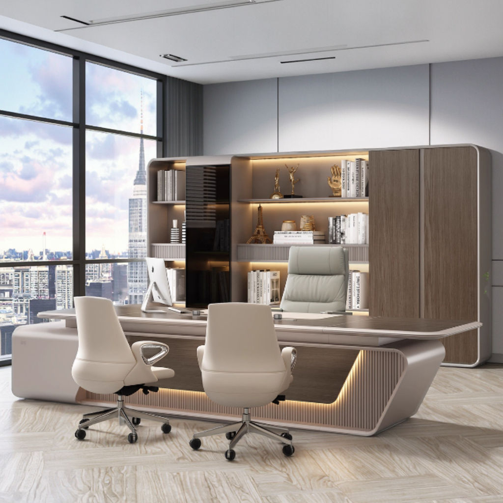 বৈশিষ্ট্য: Luxury Modern Director Table with Integrated LED Lighting, Curved Edge Design for Premium Executive Office