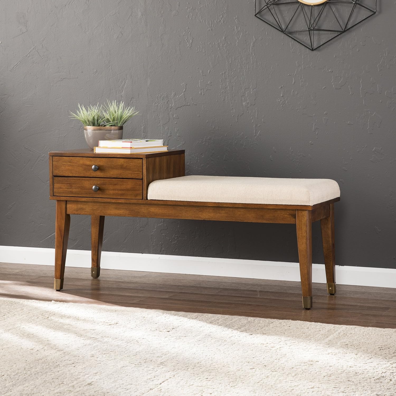 কাপড়ের আসবাবপত্র এবং কাঠের বেসে স্টোরেজ সহ অটোমান
