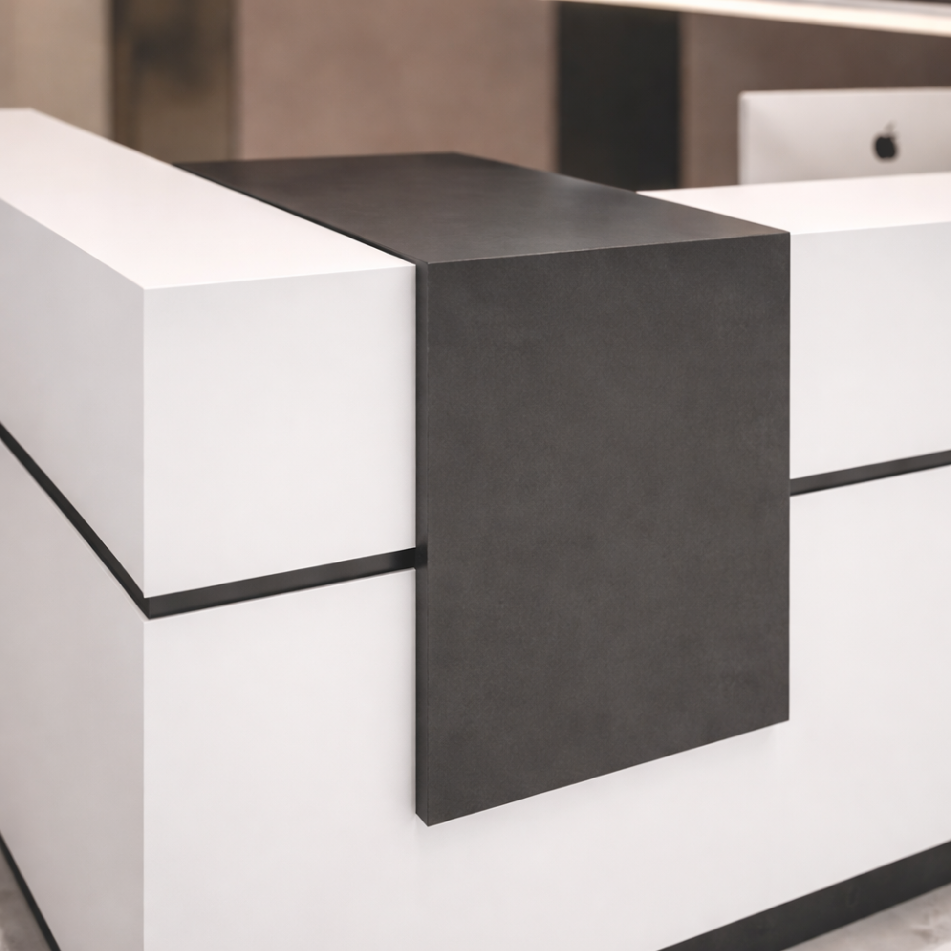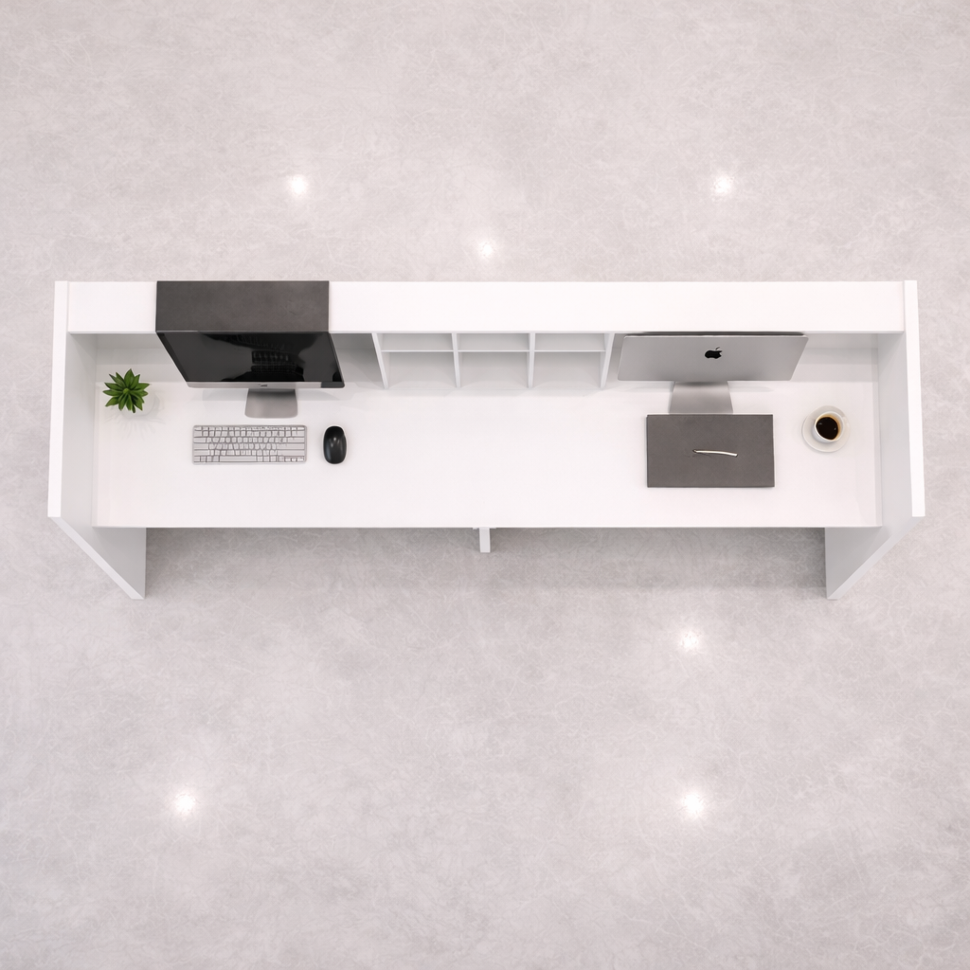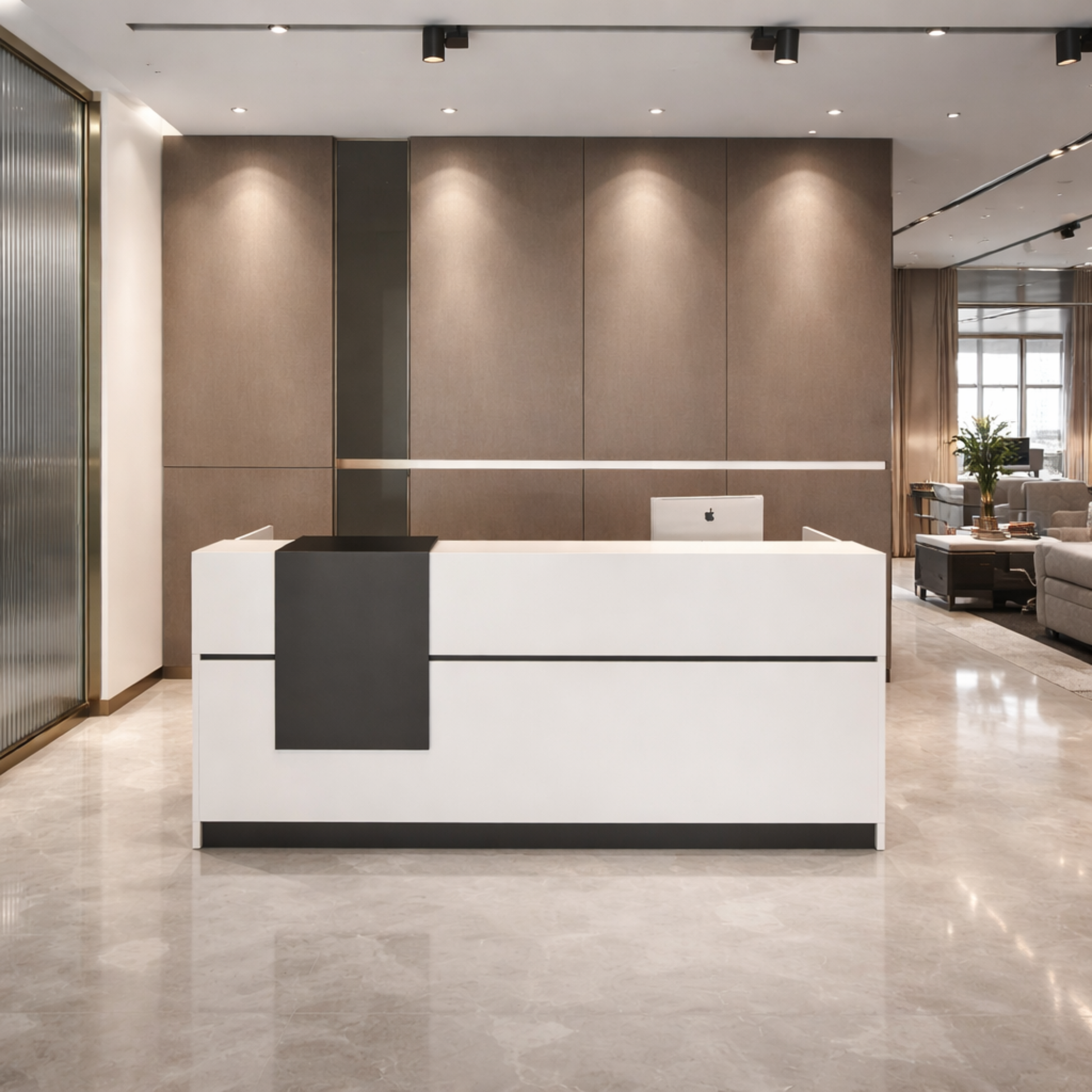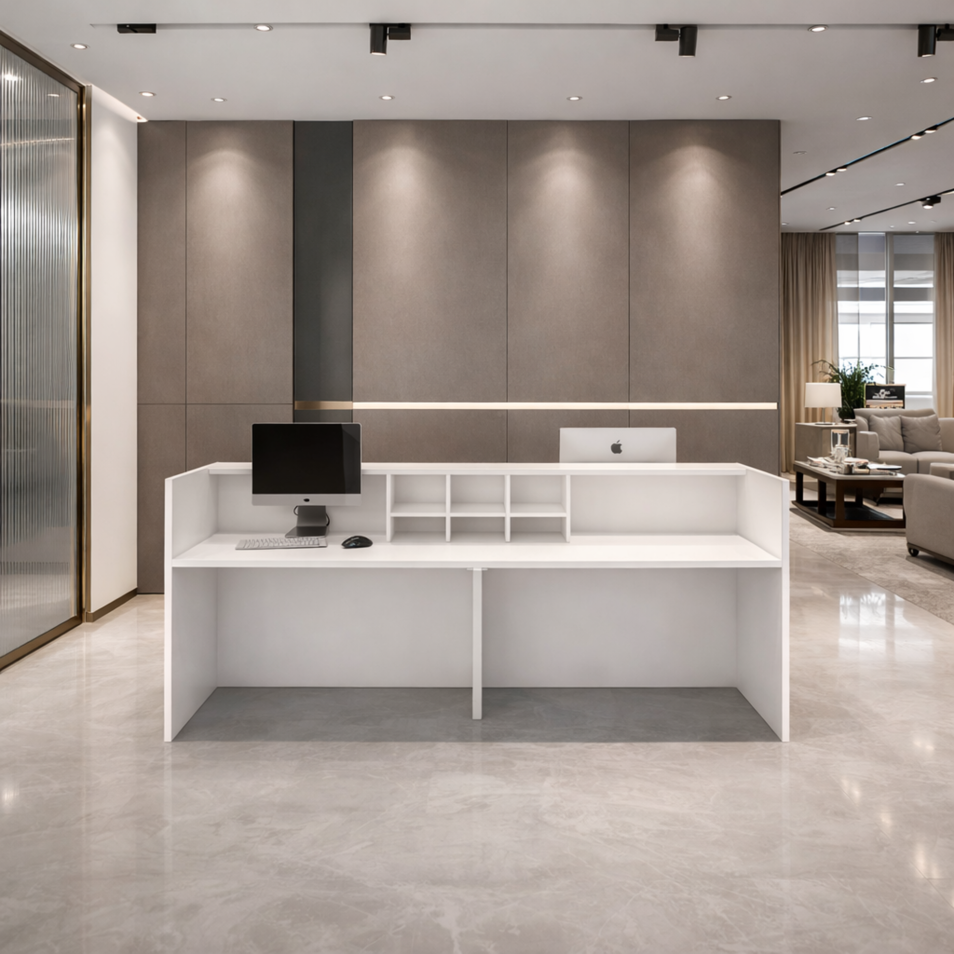 অফিসের জন্য বিলাসবহুল আধুনিক কাউন্টারের জন্য অভ্যর্থনা টেবিল, ওয়্যার ম্যানেজার সহ MDF দিয়ে তৈরি স্টাইলিশ ডিজাইন - সাদা রঙ