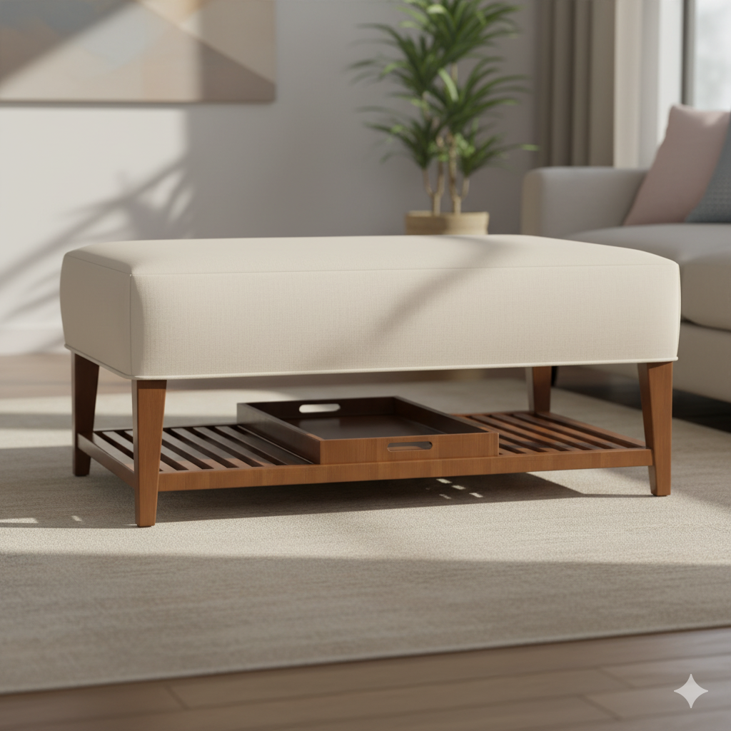 ফ্যাব্রিক গৃহসজ্জার সামগ্রী এবং কাঠের বেসে অটোমান