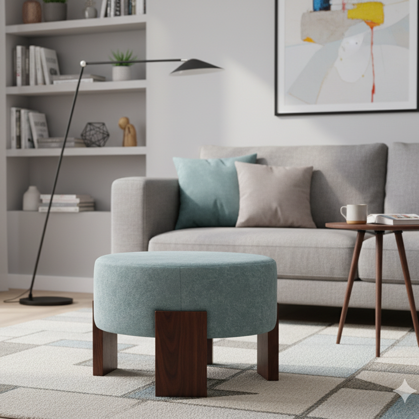 প্রিমিয়াম রাউন্ড, মার্জিত সিটিং, কমপ্যাক্ট এবং ডেকোরেটিভ অ্যাকসেন্ট পিস সহ অটোমান ফর হোম