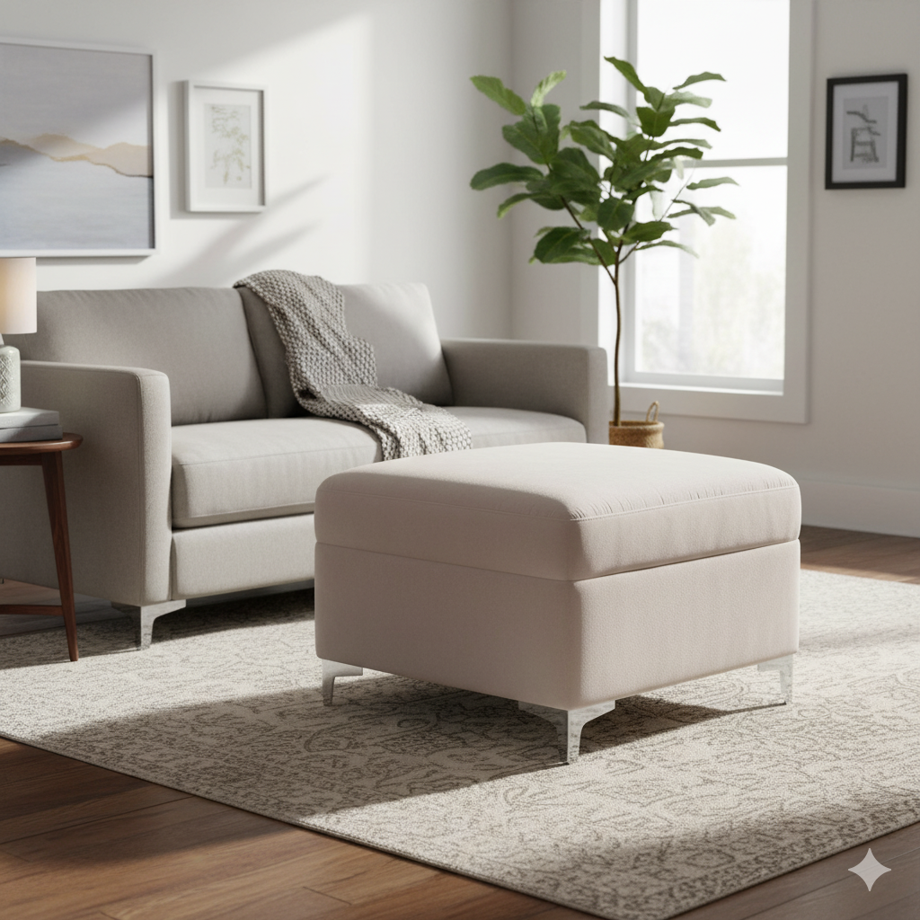 ফ্যাব্রিক গৃহসজ্জার সামগ্রী এবং কাঠের বেসে অটোমান