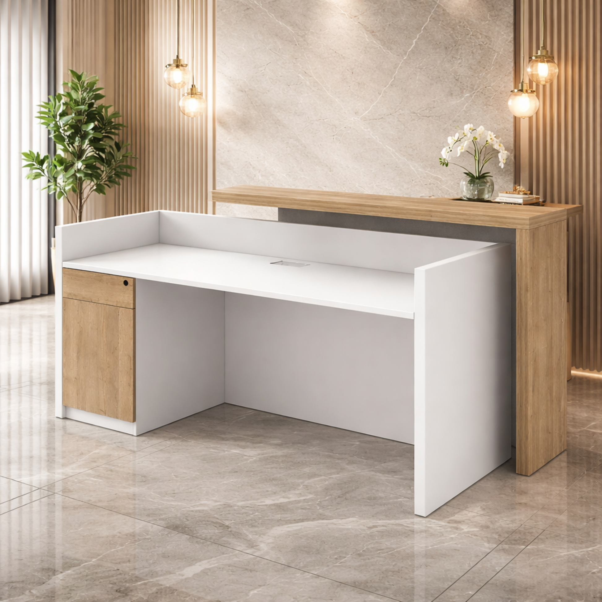 - বৈশিষ্ট্য: ১টি ড্রয়ার স্টোরেজ সহ অভ্যর্থনা টেবিল, ওয়্যার ম্যানেজার