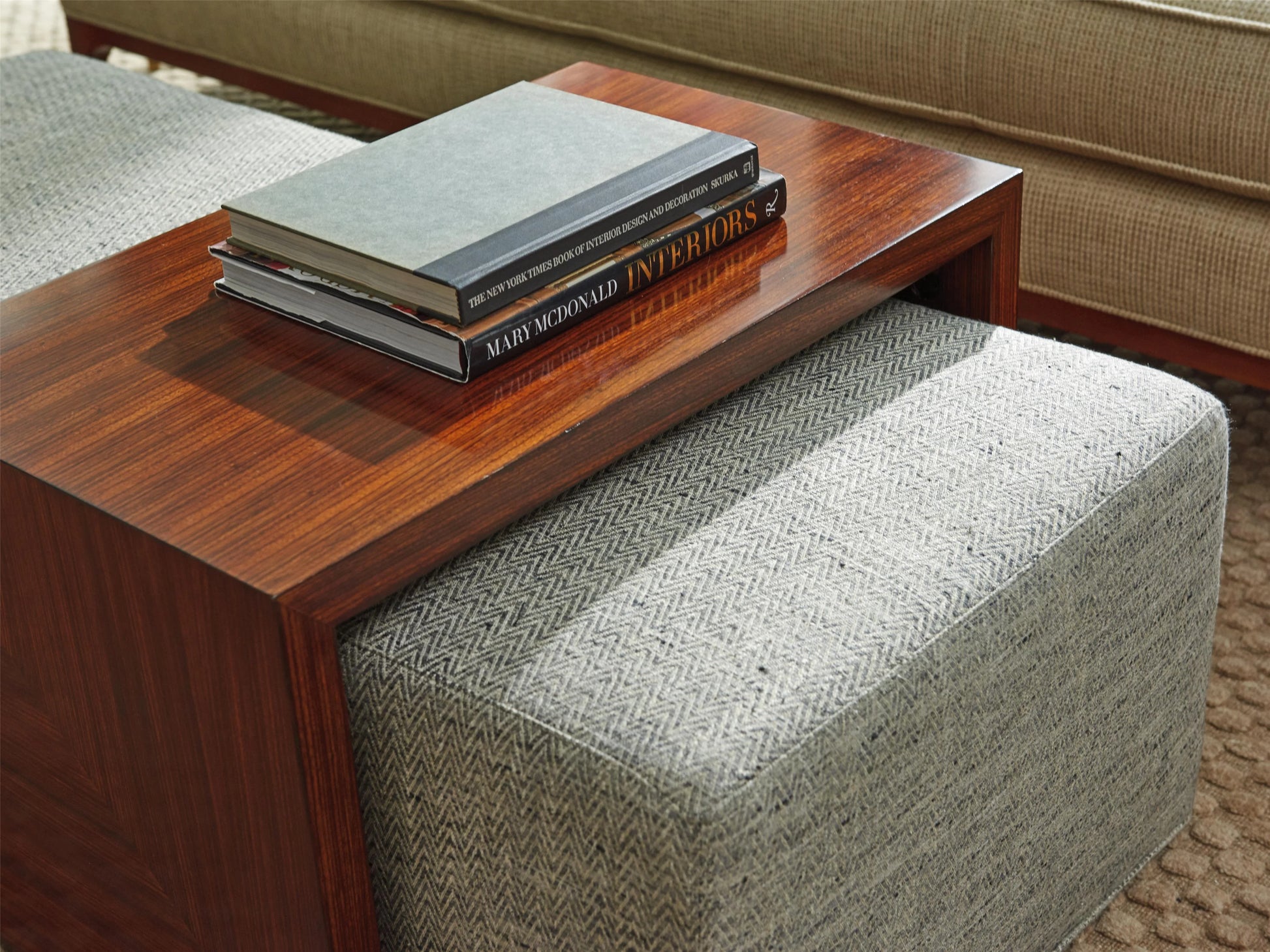 কাপড়ের আসবাবপত্র সহ কাঠের অটোমান