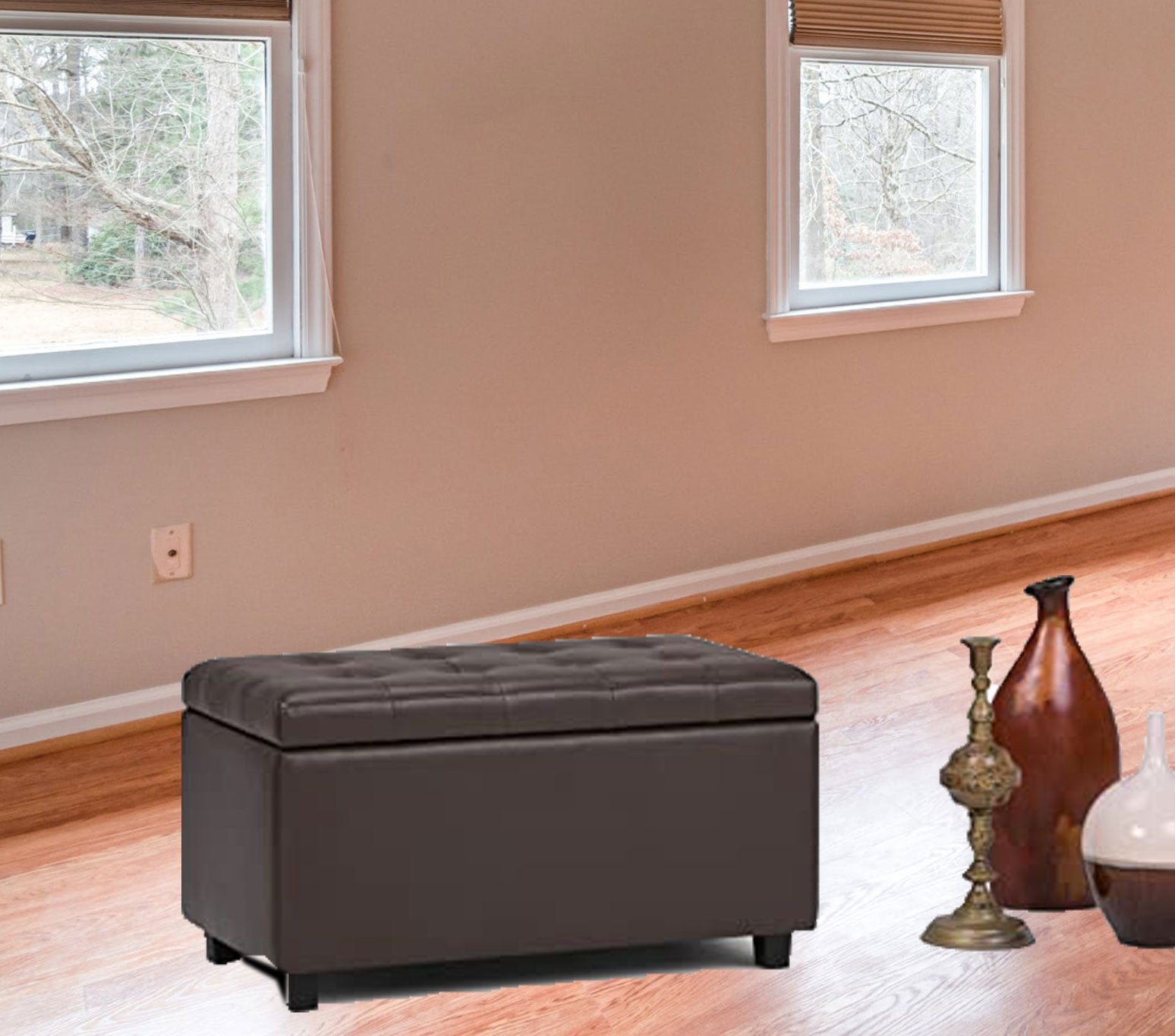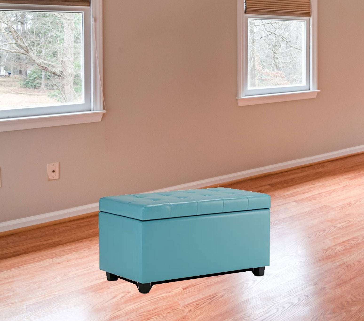 কাঠের ফ্রেম লেদারেট অটোমান স্টোরেজ সহ