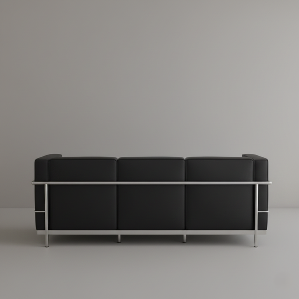 प्लाईबोर्ड फ्रेम और लेदरेट अपहोल्स्ट्री से निर्मित 3 सीटर आधुनिक डिज़ाइन वाला सोफा, मेटल फ्रेम और लेग बेस