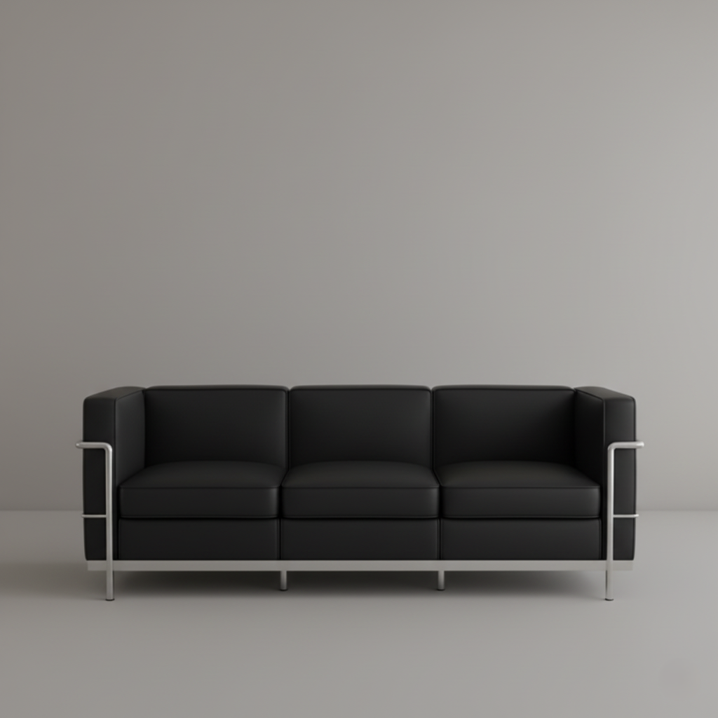 प्लाईबोर्ड फ्रेम और लेदरेट अपहोल्स्ट्री और एसएस मेटल फ्रेम और लेग बेस से निर्मित 3 सीटर आधुनिक डिज़ाइन सोफा
