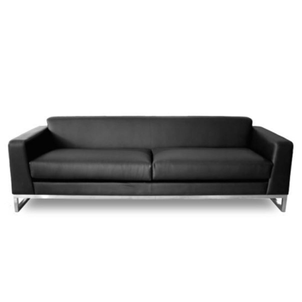 घरेलू फर्नीचर के लिए 3 सीटर सोफा, आधुनिक डिज़ाइन और लेदरेट अपहोल्स्ट्री के साथ प्लाईवुड फ्रेम में निर्मित - मुलायम सीटिंग और धातु के पैर