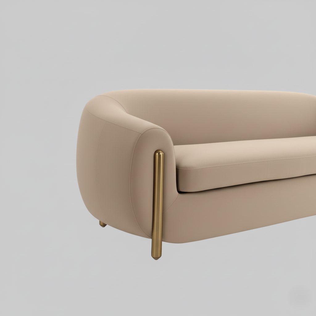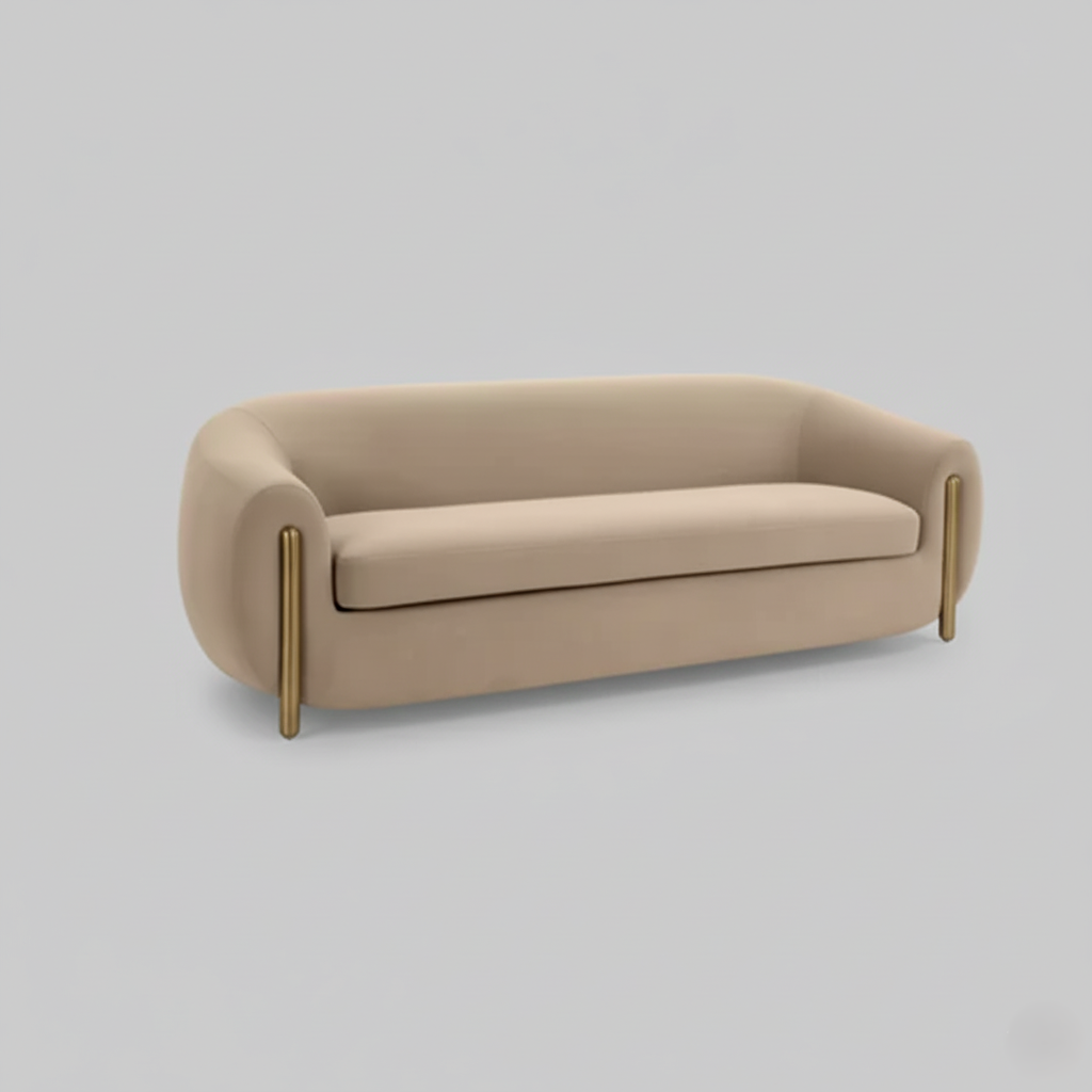 घर के फर्नीचर के लिए 3 सीटर सोफा, लिविंग रूम और ऑफिस के लिए मखमली आधुनिक और टिकाऊ डिज़ाइन - बेज