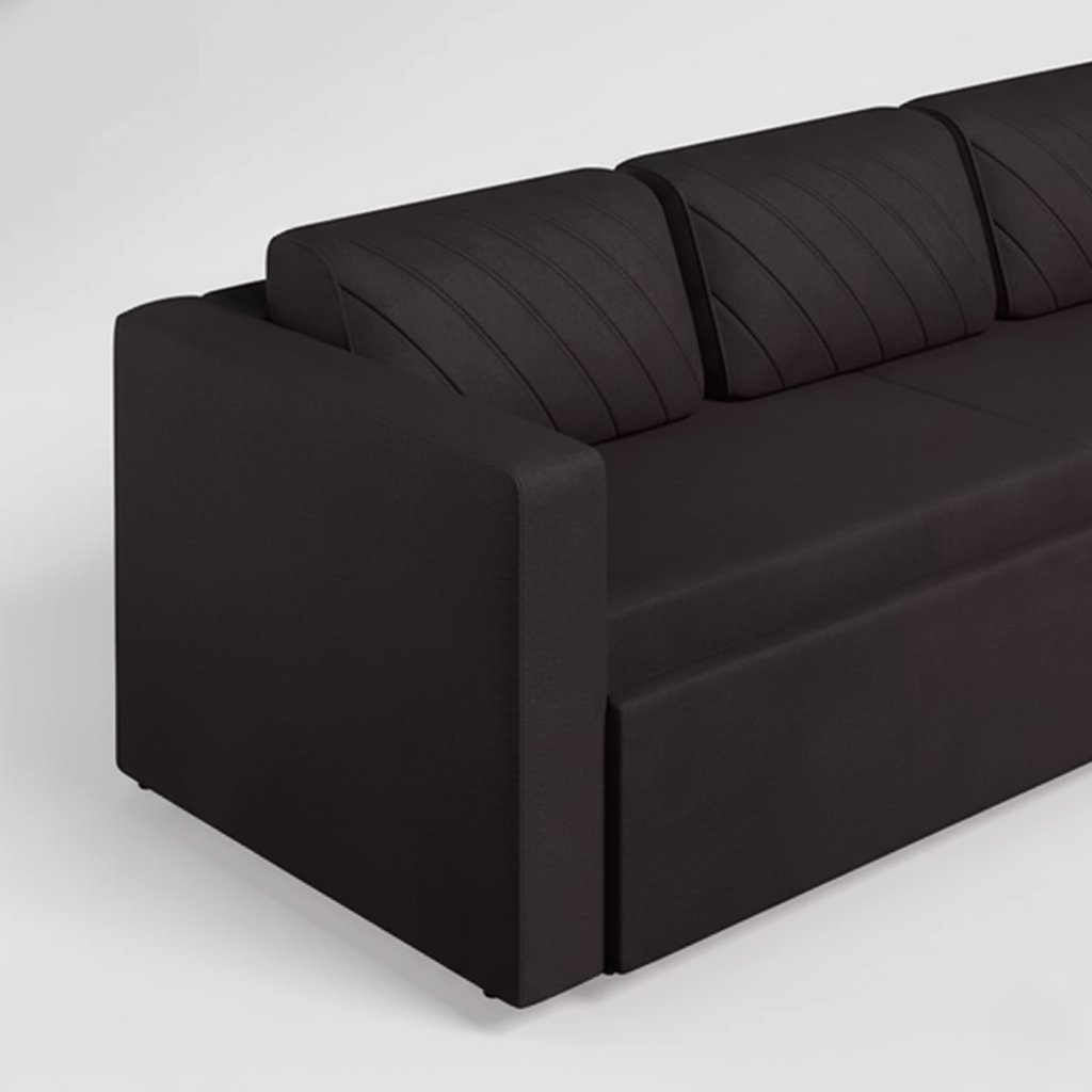 घर के फर्नीचर के लिए सोफा कम बेड लेदरेट फ़ैब्रिक, फ़्रेम प्लाईबोर्ड, लिविंग रूम के लिए उच्च घनत्व वाला फ़ोम, मुलायम और आरामदायक सीटिंग - काला