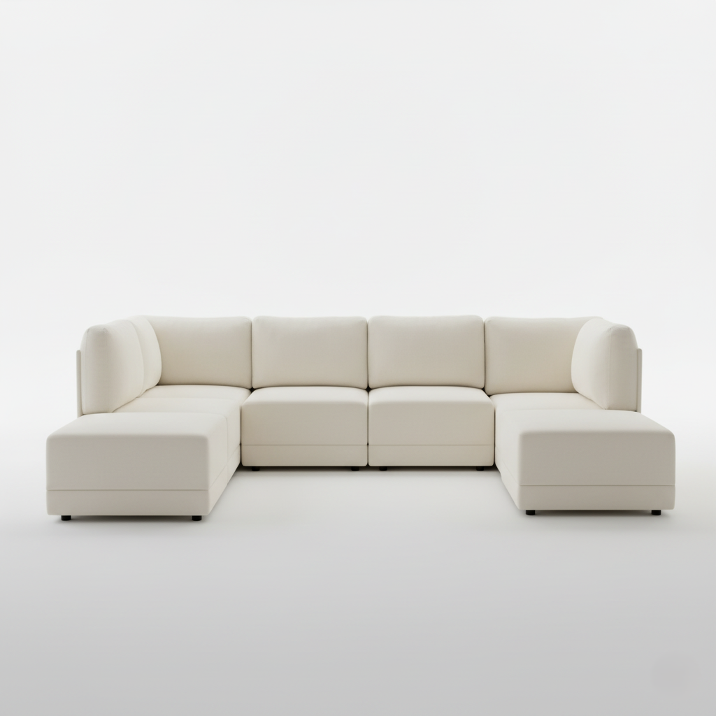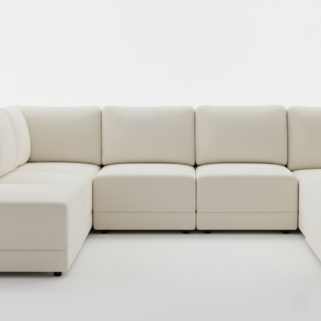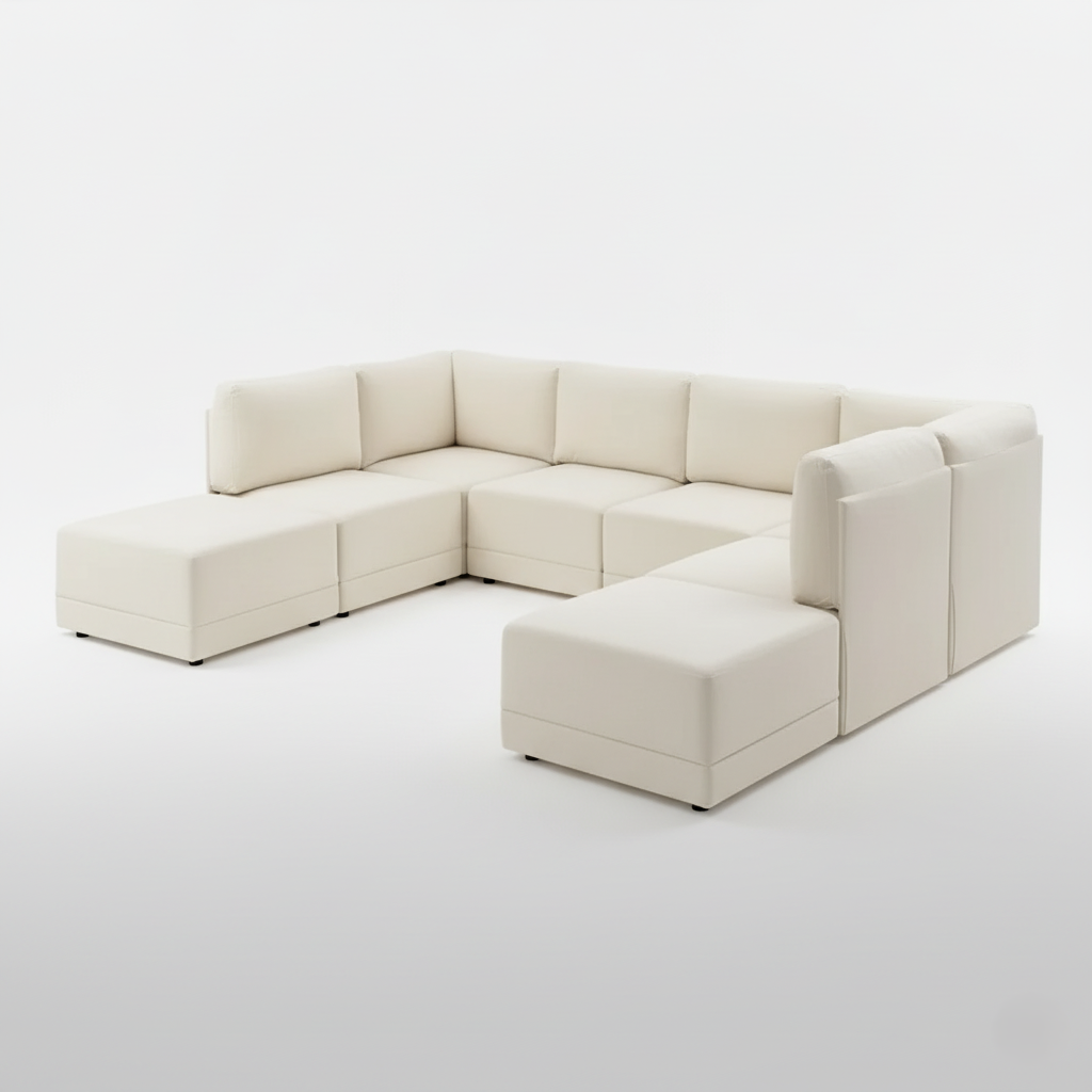 7 सीटर सोफा और चौड़ा सममित मॉड्यूलर कॉर्नर डिज़ाइन अपहोल्स्ट्री साबर लिविंग रूम के लिए आधुनिक और टिकाऊ डिज़ाइन - ऑफ व्हाइट