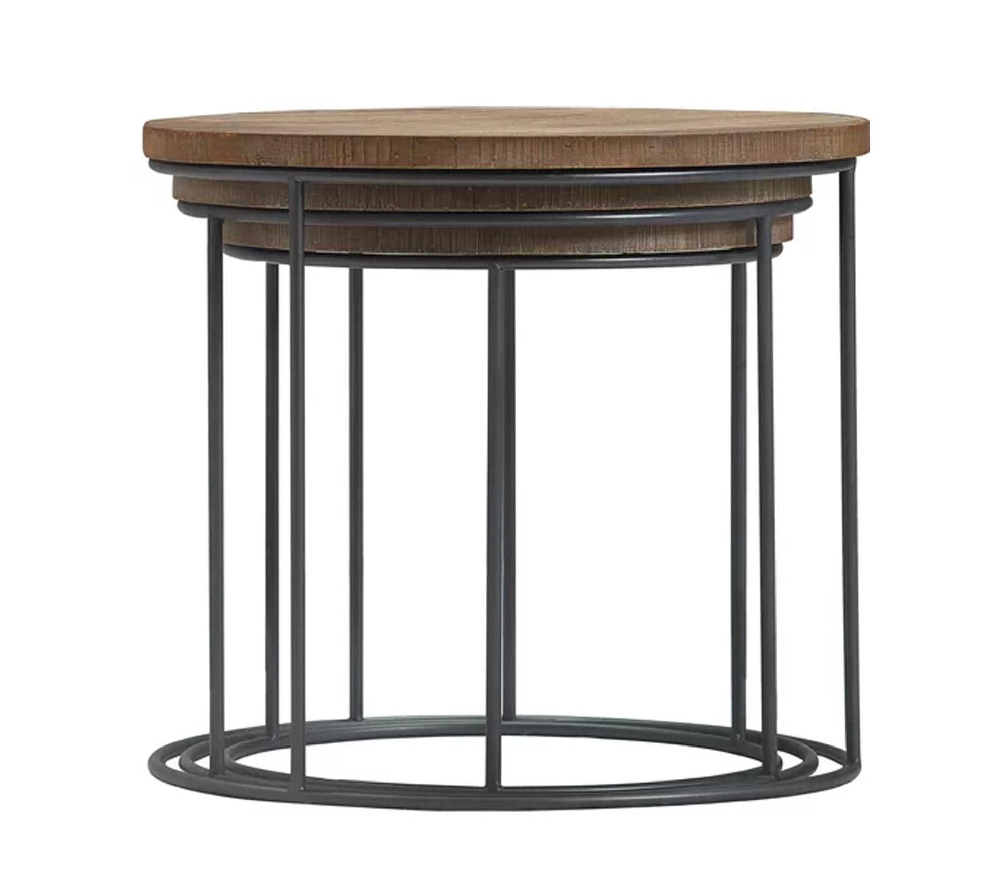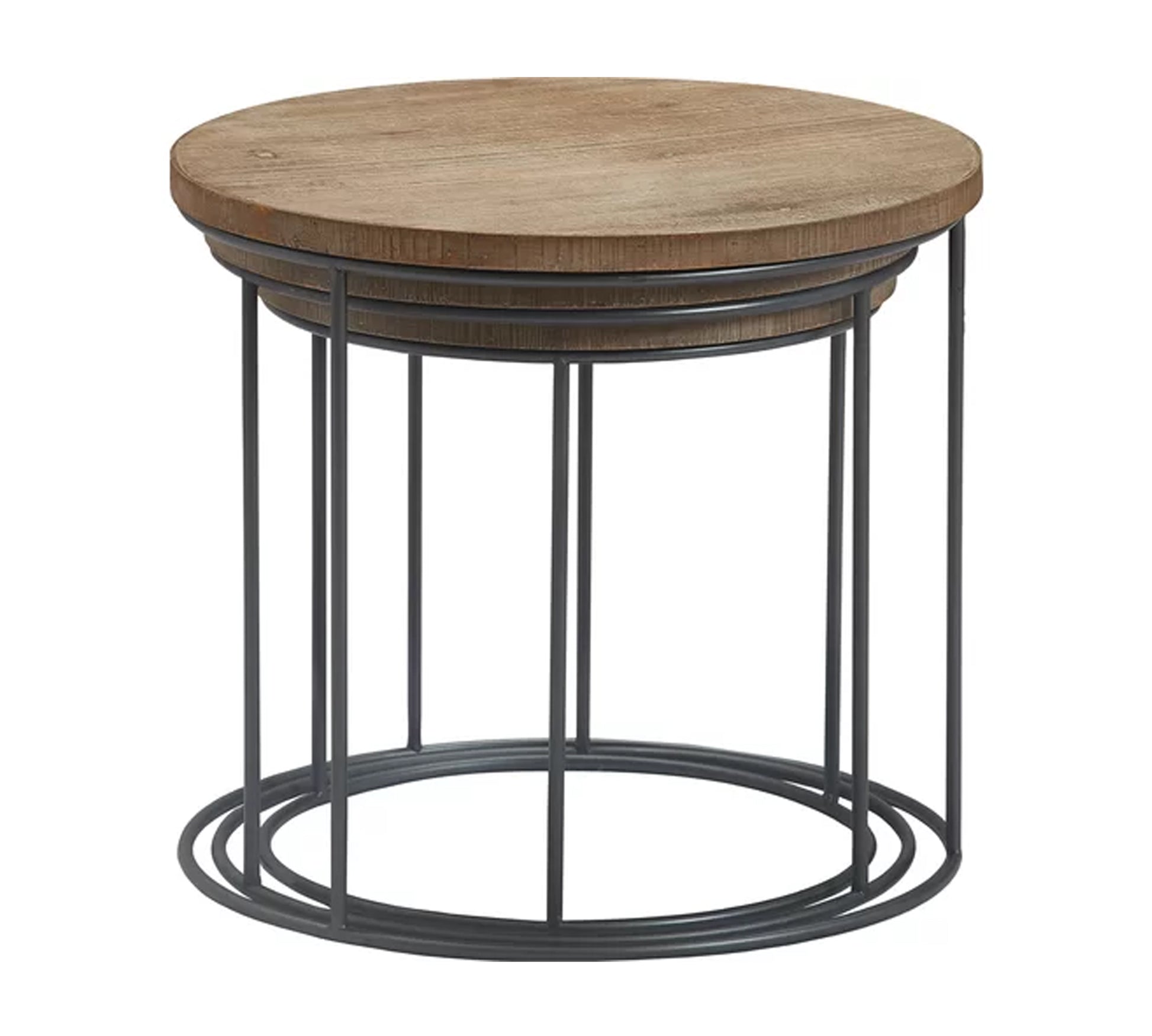 धातु के पैरों वाले आधार के साथ लकड़ी की साइड टेबल