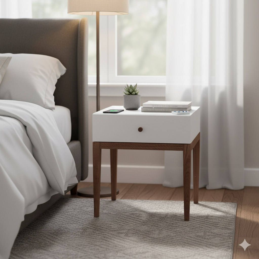 लकड़ी के फ्रेम पैर आधार साइड टेबल दराज के साथ