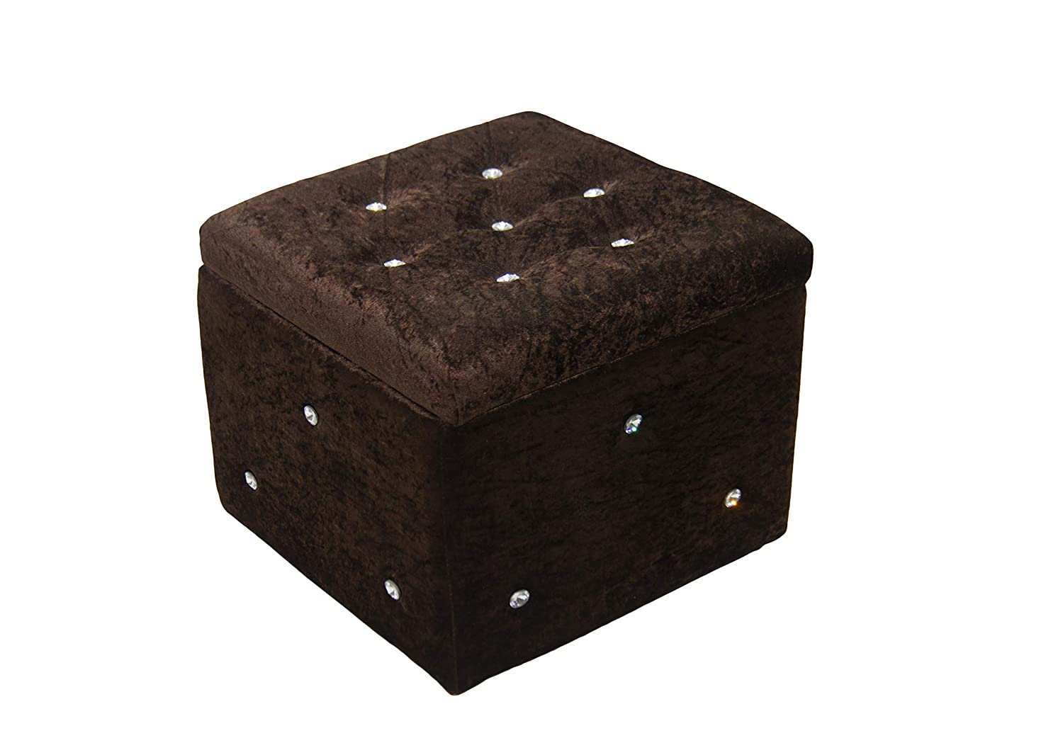 स्टोरेज के साथ लकड़ी के फ्रेम वाला मखमली पाउफ