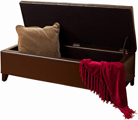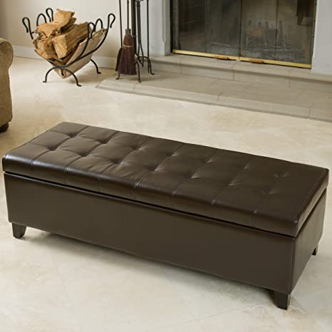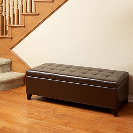 स्टोरेज के साथ लकड़ी के फ्रेम वाला लेदरेट ओटोमन