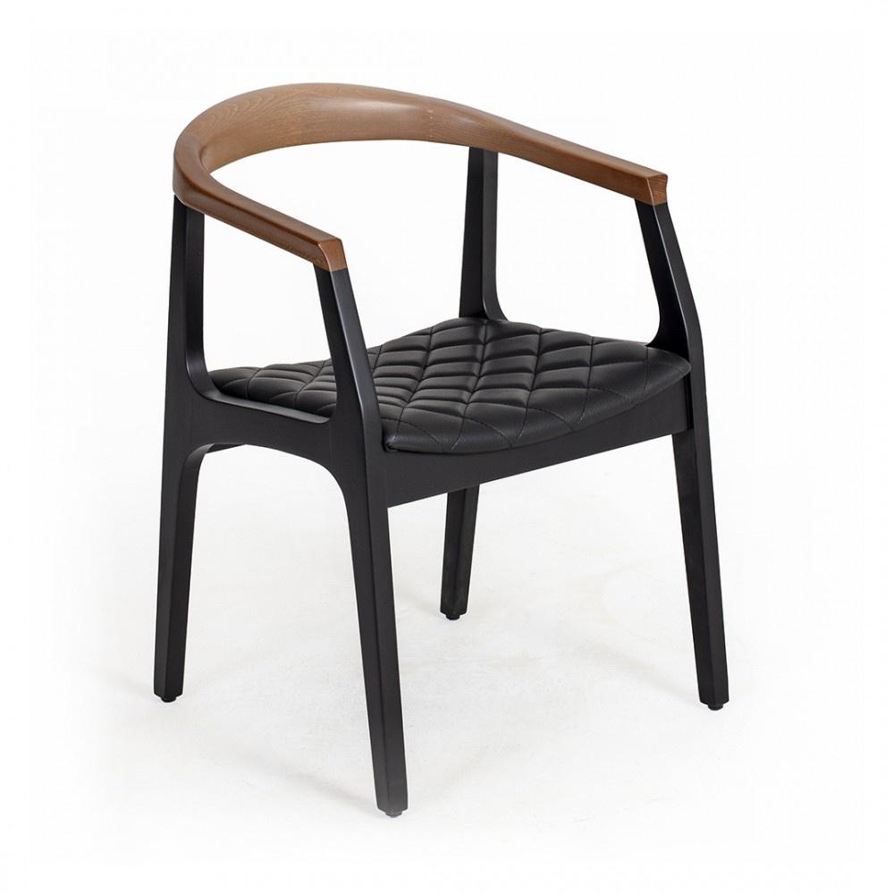 Distinctive Wood Backrest/Armrests: A standout feature is the beautifully curved, single-piece wooden backrest that flows into integrated armrests. The wood has a warm, natural finish.