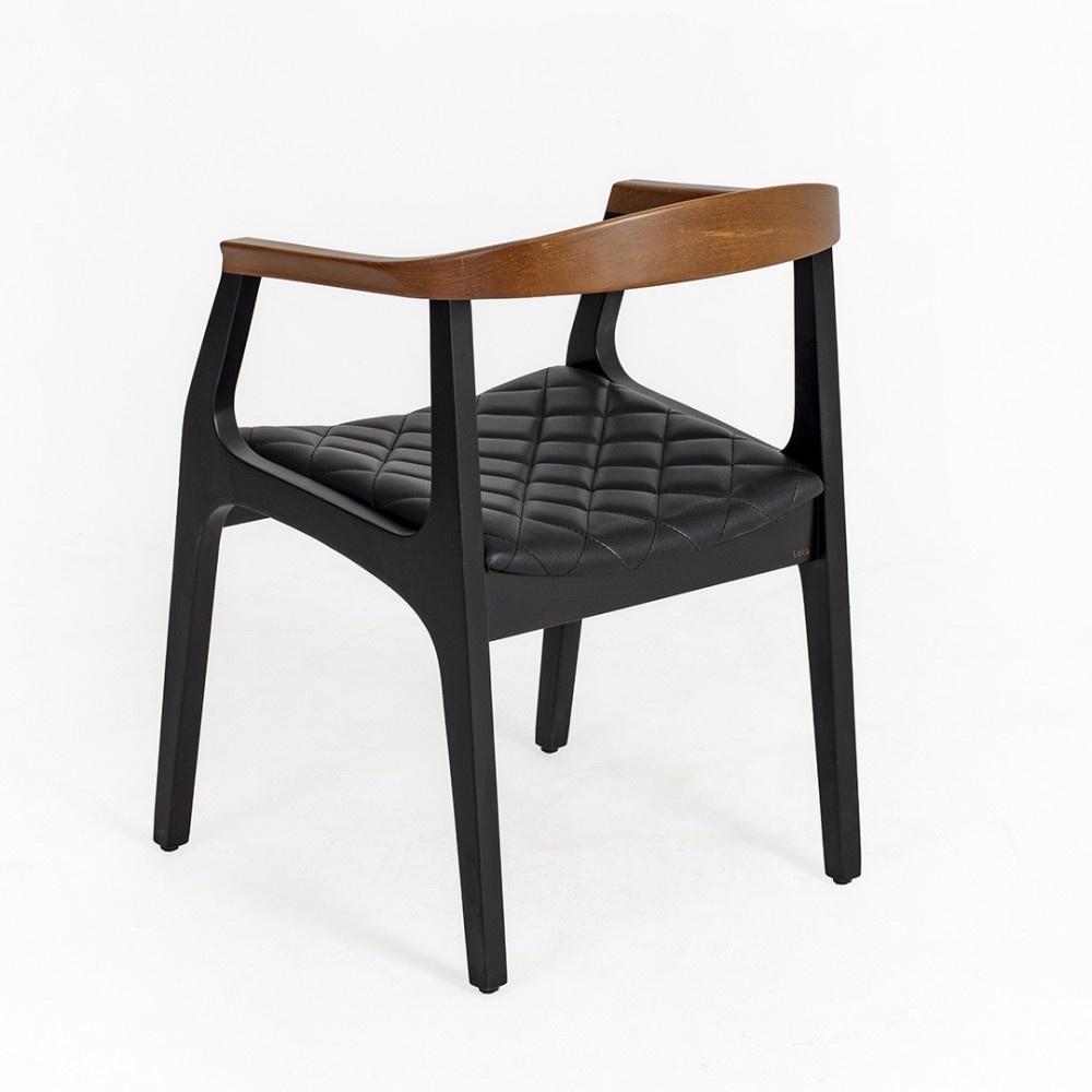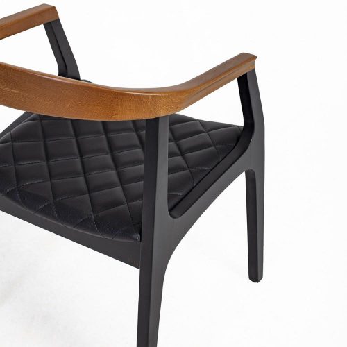 Matte Black Base: The entire base structure, including the legs and frame beneath the seat, is finished in a matte black, providing a strong, modern contrast to the natural wood.