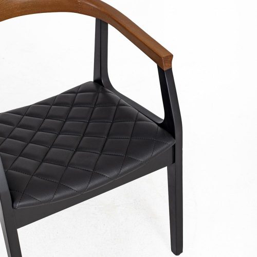 Quilted Faux Leather Seat: The seat is padded and upholstered in a smooth, black leatherette material, featuring a subtle diamond-quilted pattern for added texture and sophistication.