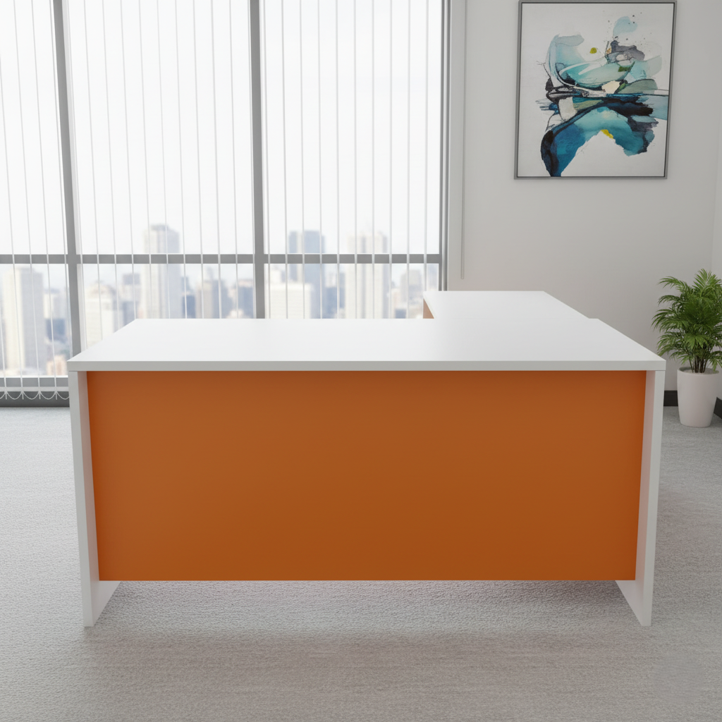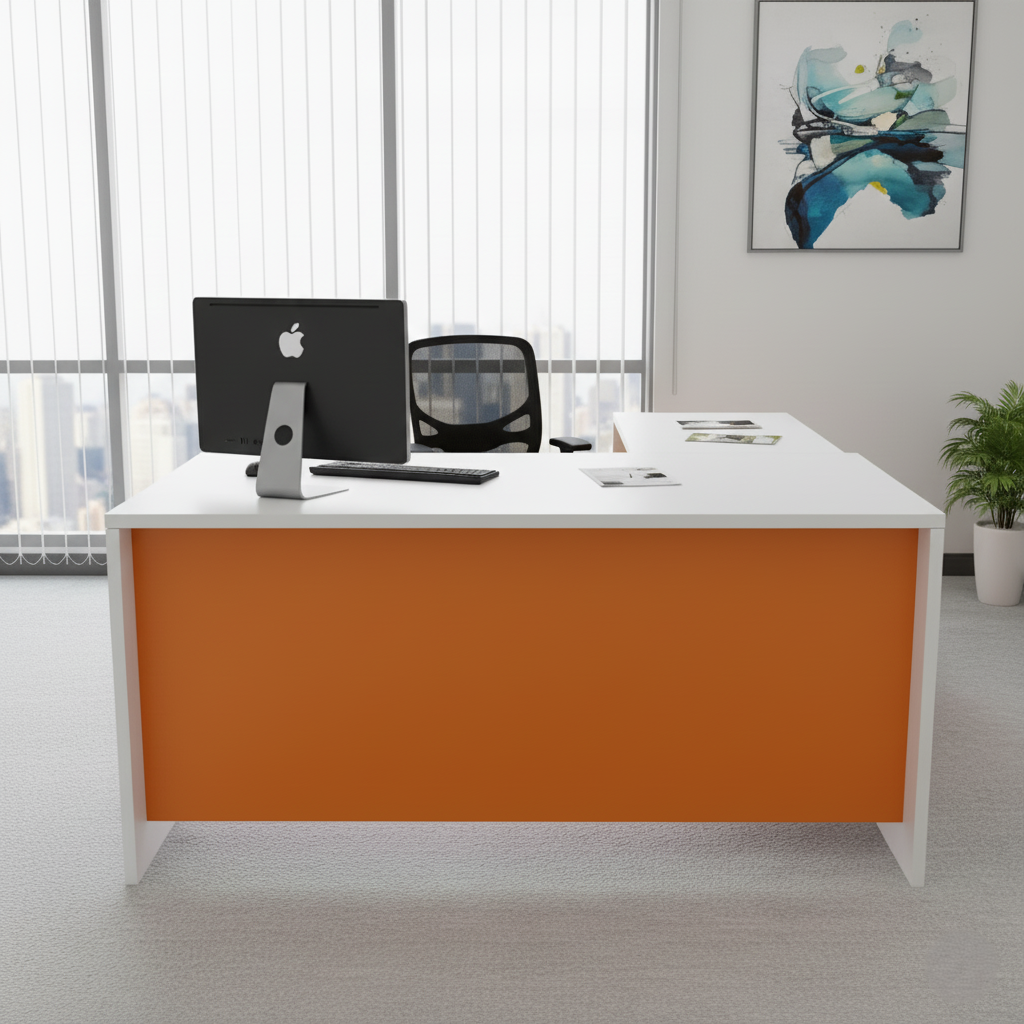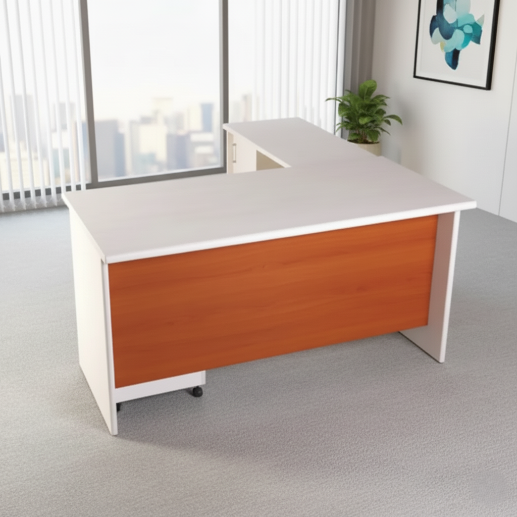 डायरेक्टर और एग्जीक्यूटिव एल आकार का ऑफिस टेबल, पार्टिकल बोर्ड से बना, दराज़ वाले पेडस्टल के साथ