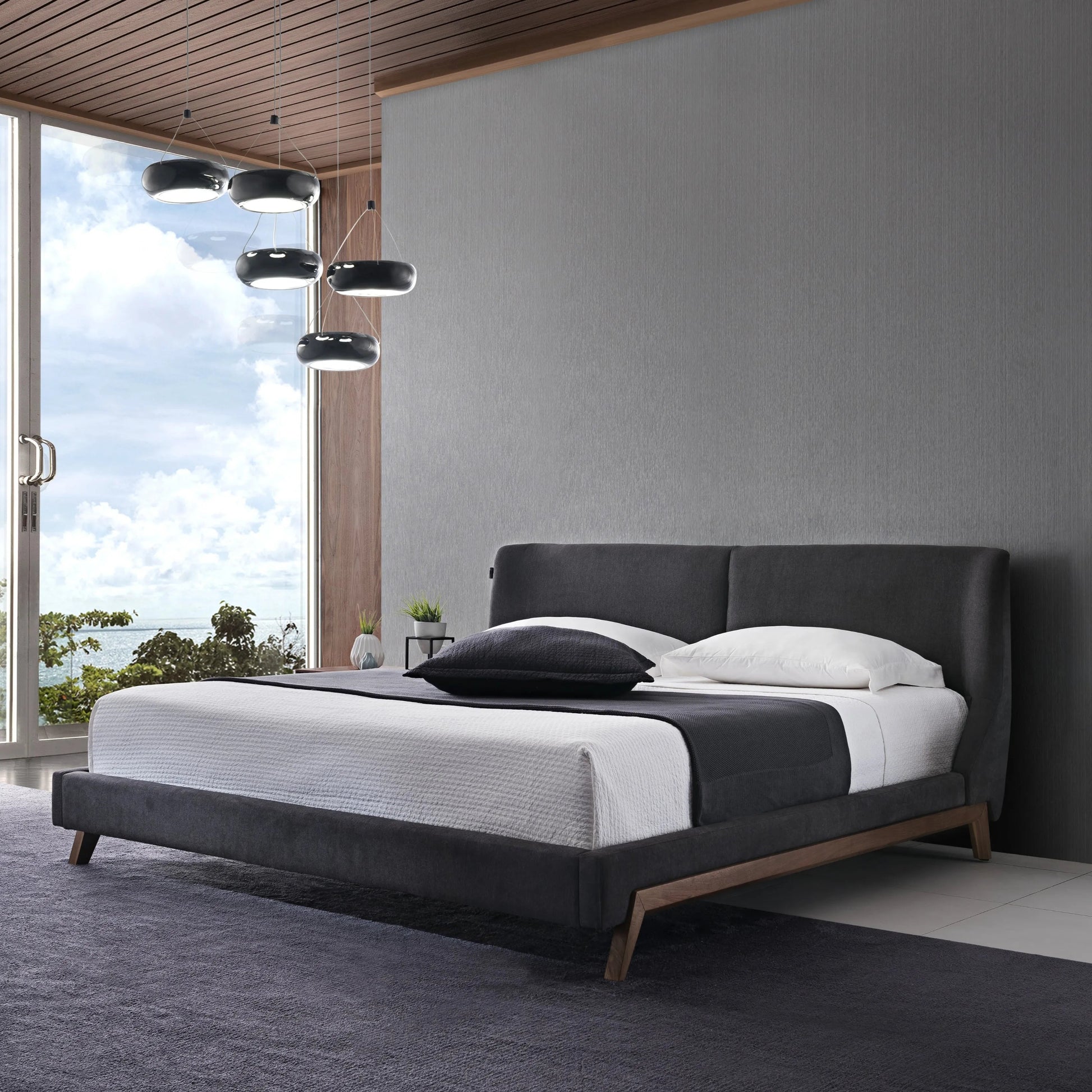 सुरुचिपूर्ण आधुनिक किंग साइज़ बेड - प्रीमियम डिज़ाइन में टिकाऊ ठोस लकड़ी के साथ असबाबवाला आराम