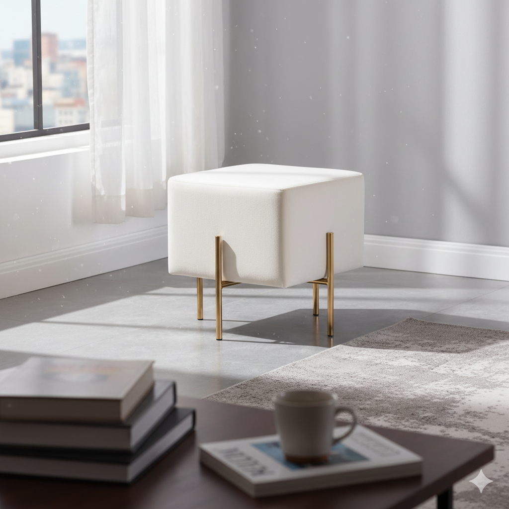 पाउफ चेयर फ़ैब्रिक अपहोल्स्ट्री और मेटल बेस
