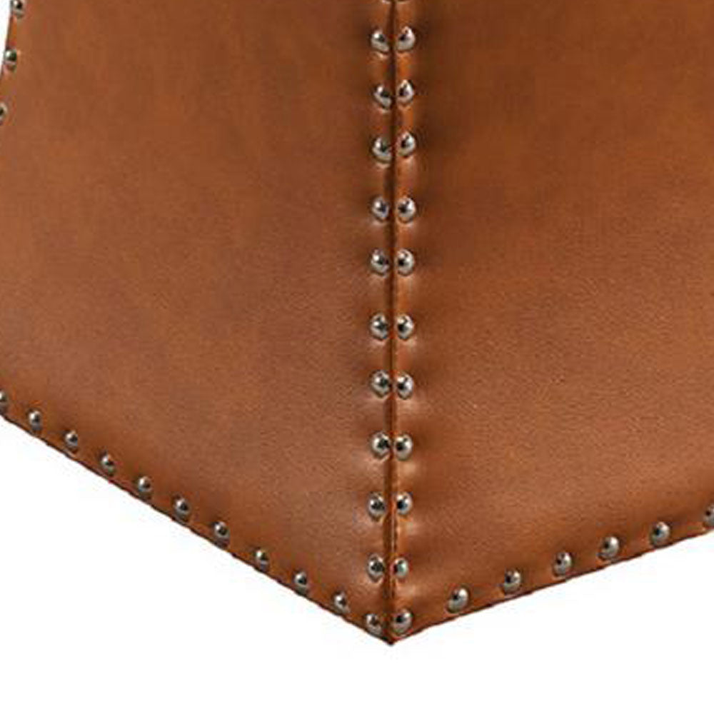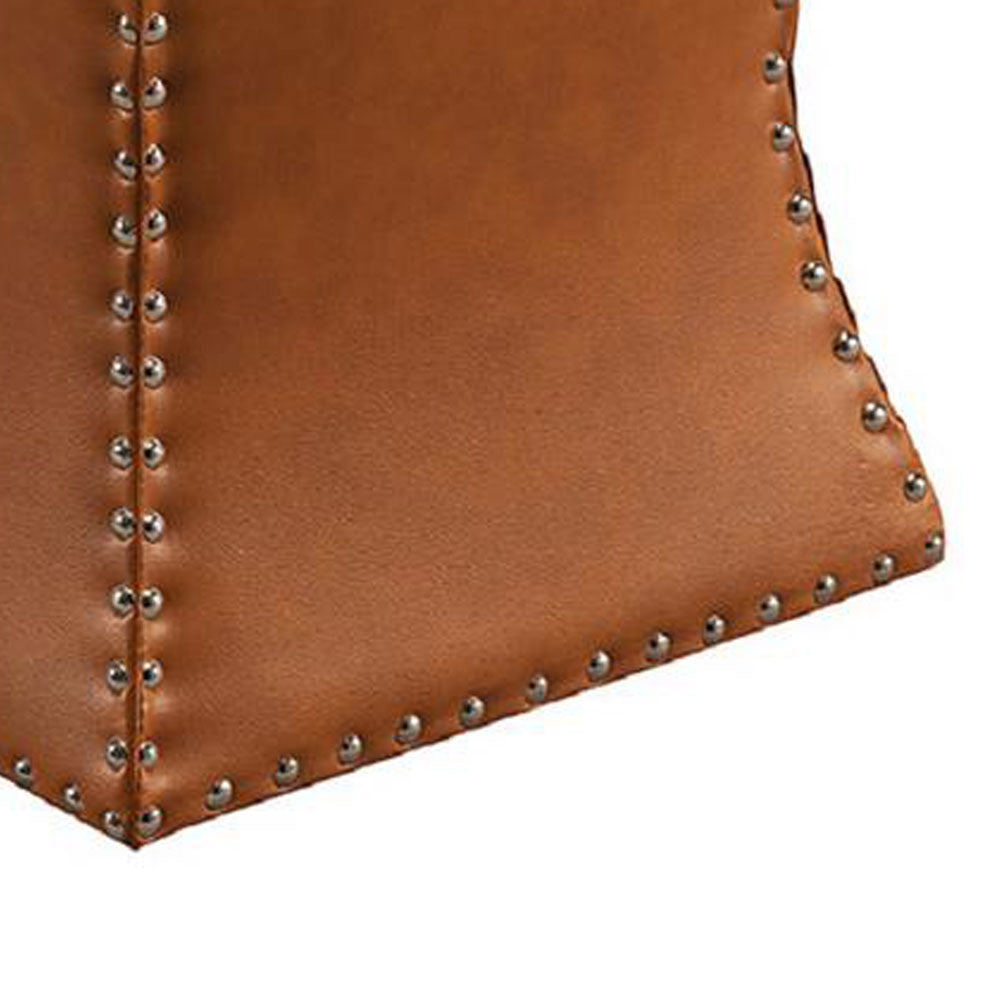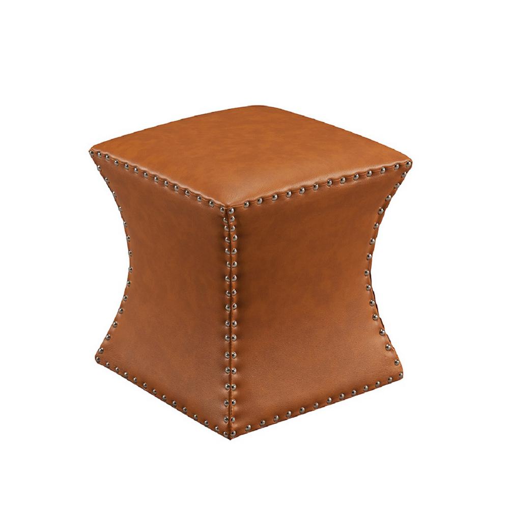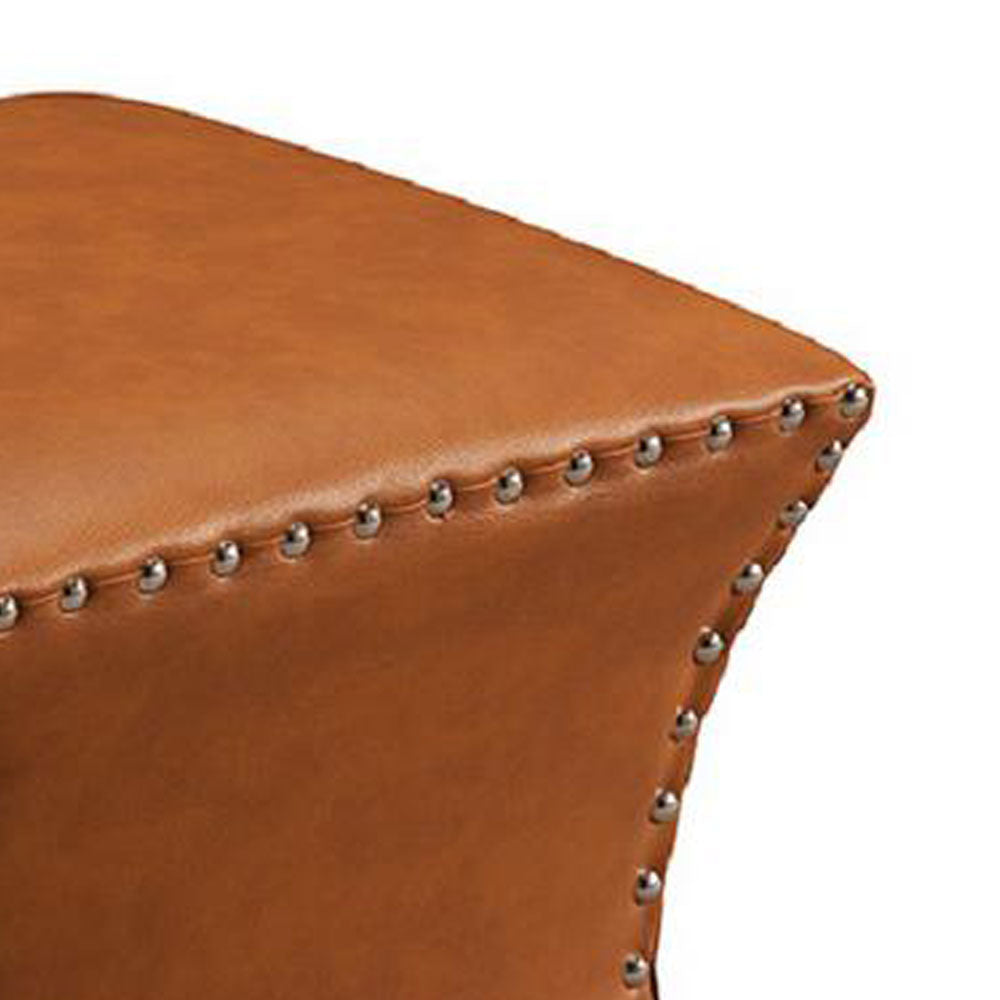 फ़ीचर: Premium tan leather; hand-stitched details; durable construction; versatile seating/footrest/table; compact & stylish.