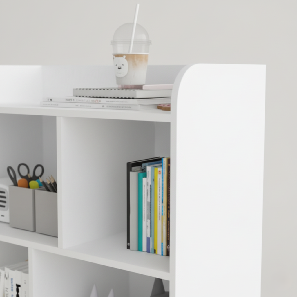 Feature: Spacious multi-level shelves, compact footprint, sturdy build, smooth edges, and versatile storage design to neatly organize books, toys, and décor items.