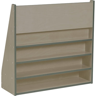 Feature: Front-facing display shelves for easy book visibility, spacious tiers for multiple books, sturdy side panels for stability, child-safe edges, and compact design.