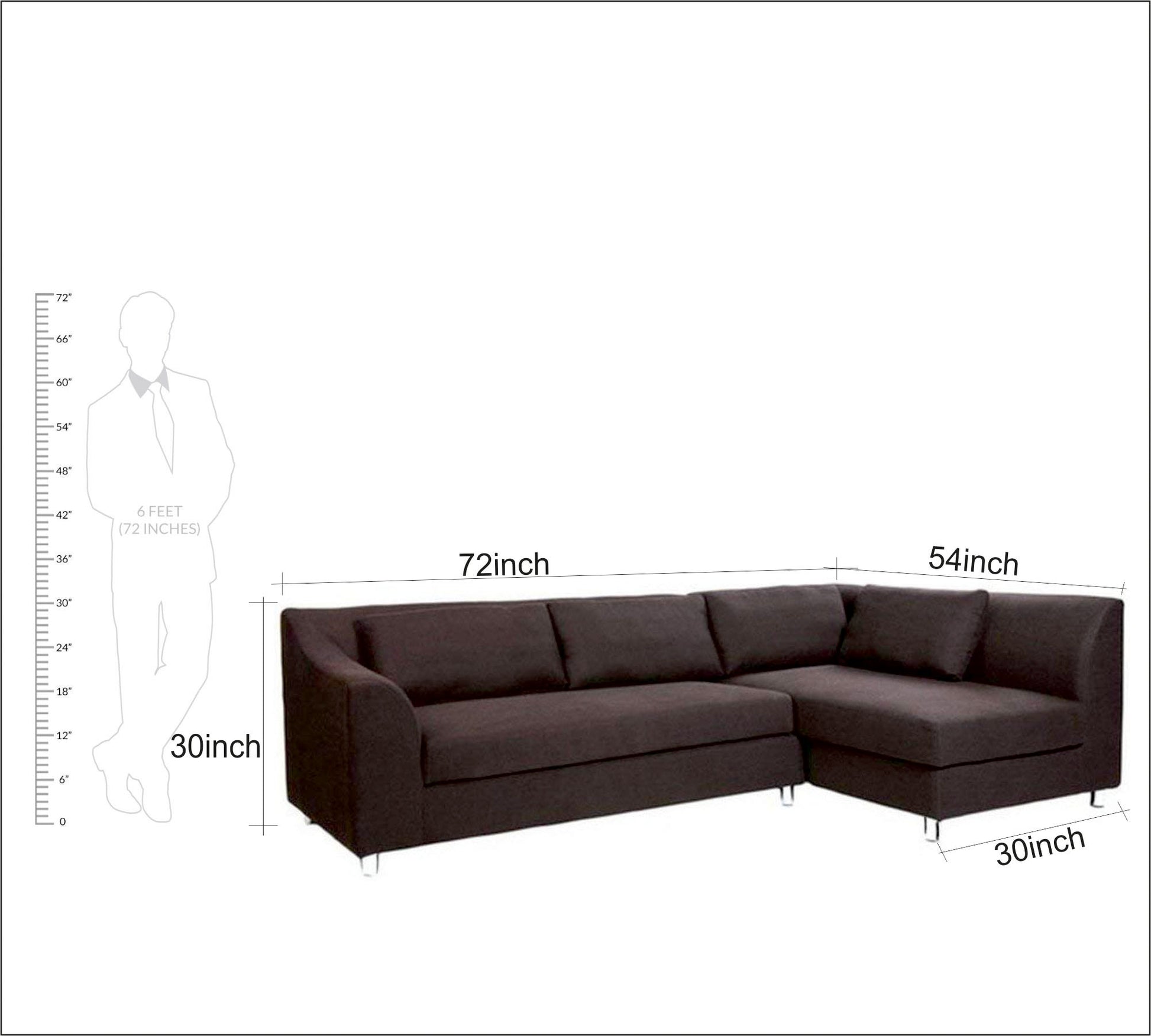 इंच में आयाम:- लंबाई - 76 इंच, चौड़ाई - 54 इंच, ऊंचाई - 30 इंच, सीट की ऊंचाई - लगभग 18 इंच।