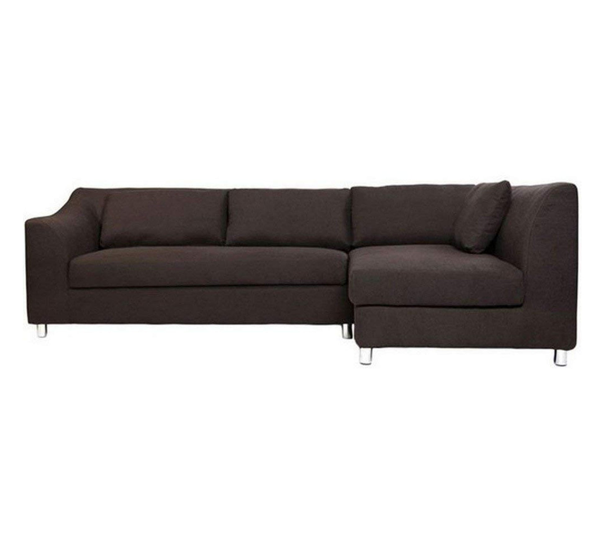 एल-आकार का लकड़ी का सोफा, 3 और 4 सीटर, साबर फ़ैब्रिक अपहोल्स्ट्री और लकड़ी के पैरों के साथ | लिविंग रूम और ऑफिस के लिए आदर्श