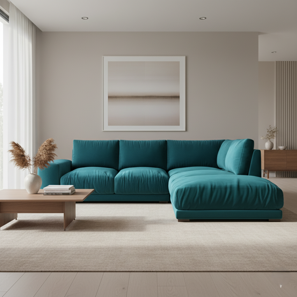 3 सीटर एल आकार सोफा आधुनिक डिजाइन और कपड़ा टिकाऊ और आरामदायक गद्देदार लिविंग रूम, कार्यालय के लिए बिल्कुल सही - नीला